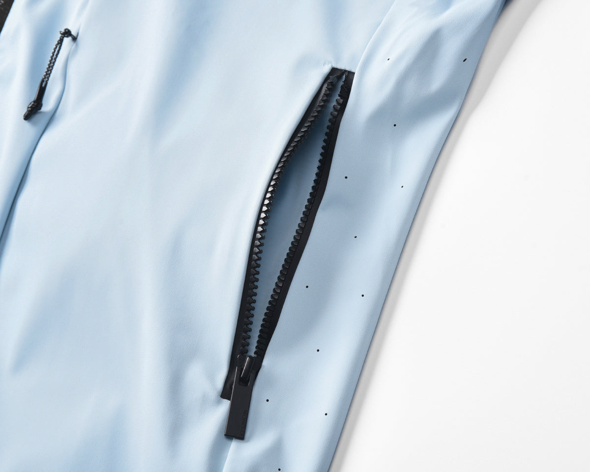 Embrace performance and minimalism with this Lightweight Technical Hooded Jacket in a clean ice blue tone. Engineered for versatility, this outerwear essential features a sleek silhouette with laser-cut ventilation detailing across the chest for optimal airflow and breathability.