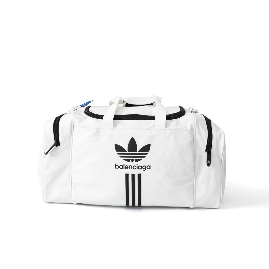 The co-branded logo—featuring the adidas Trefoil and Balenciaga wordmark—adds high-impact brand recognition. With multiple zip compartments, top handles, and an adjustable shoulder strap, this duffle is as versatile as it is eye-catching.