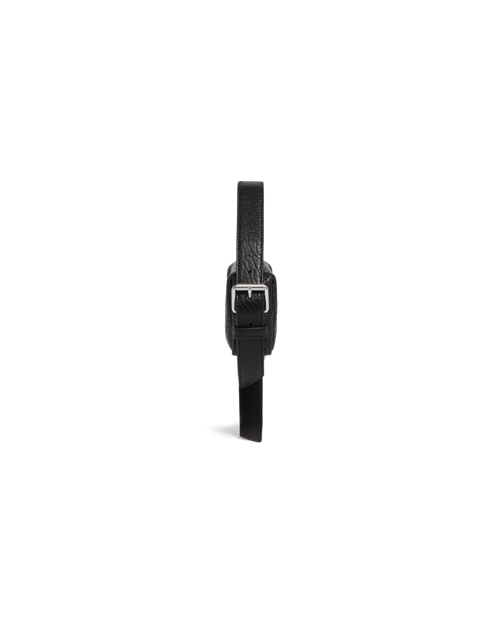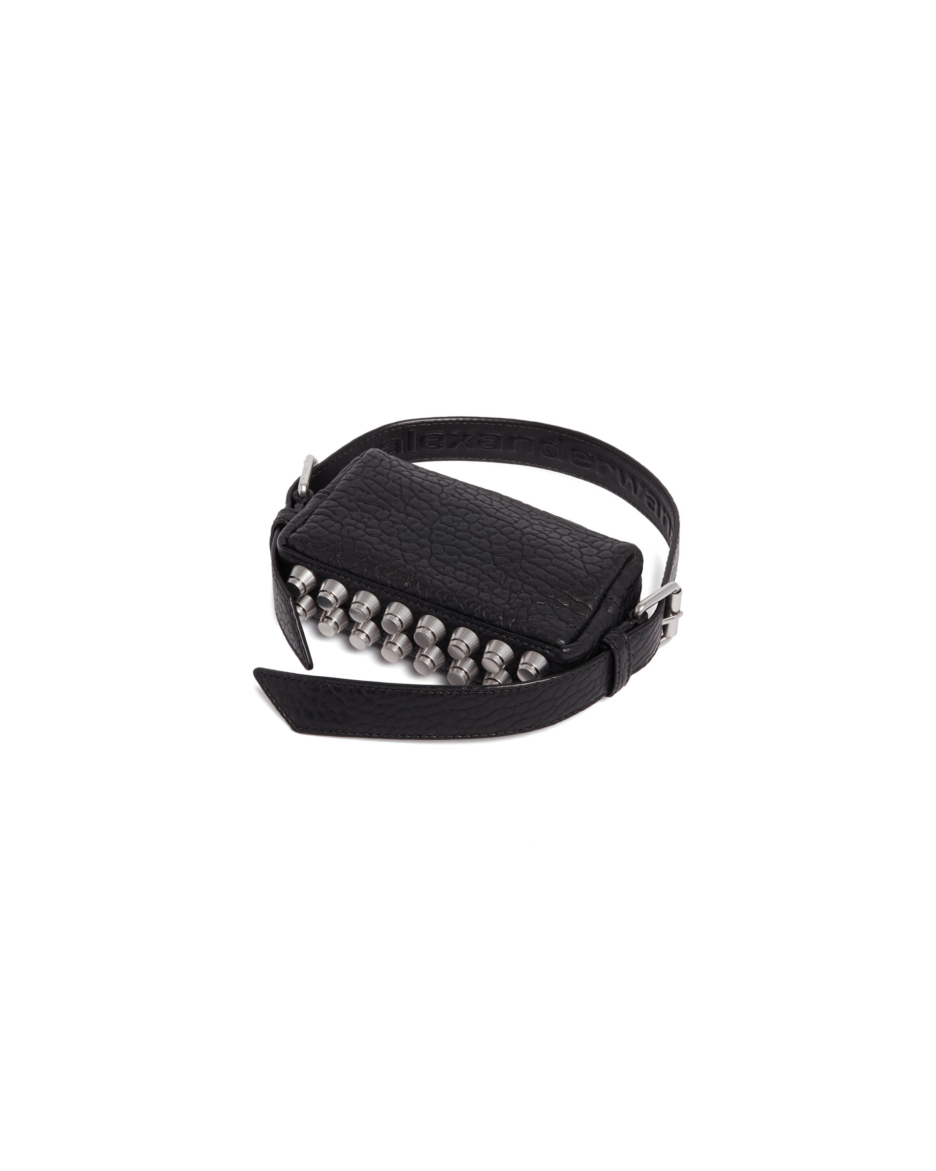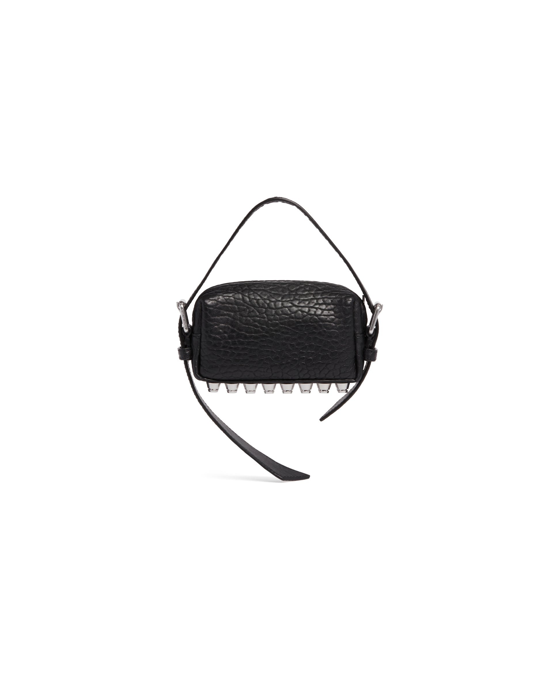 Alexander Wang Black Ricco Small Leather Bag. Black leather, top zip closure, adjustable shoulder strap featuring an embossed logo. Bottom with trap studs, main compartment lined with twill and an internal credit card pocket. Size (cm): 17X10X4