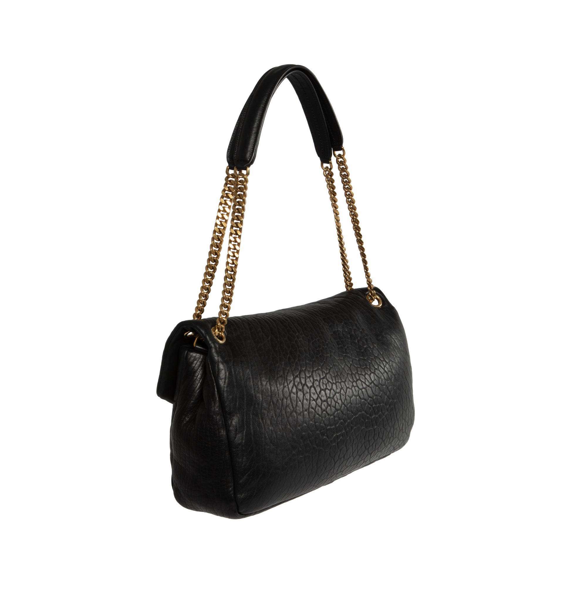 SAINT LAURENT Calypso Large Bag featuring grosgrain lining, snap button closure and one interior pocket. 11" X 8.7" X 4.7". 95% lambskin, 5% brass.