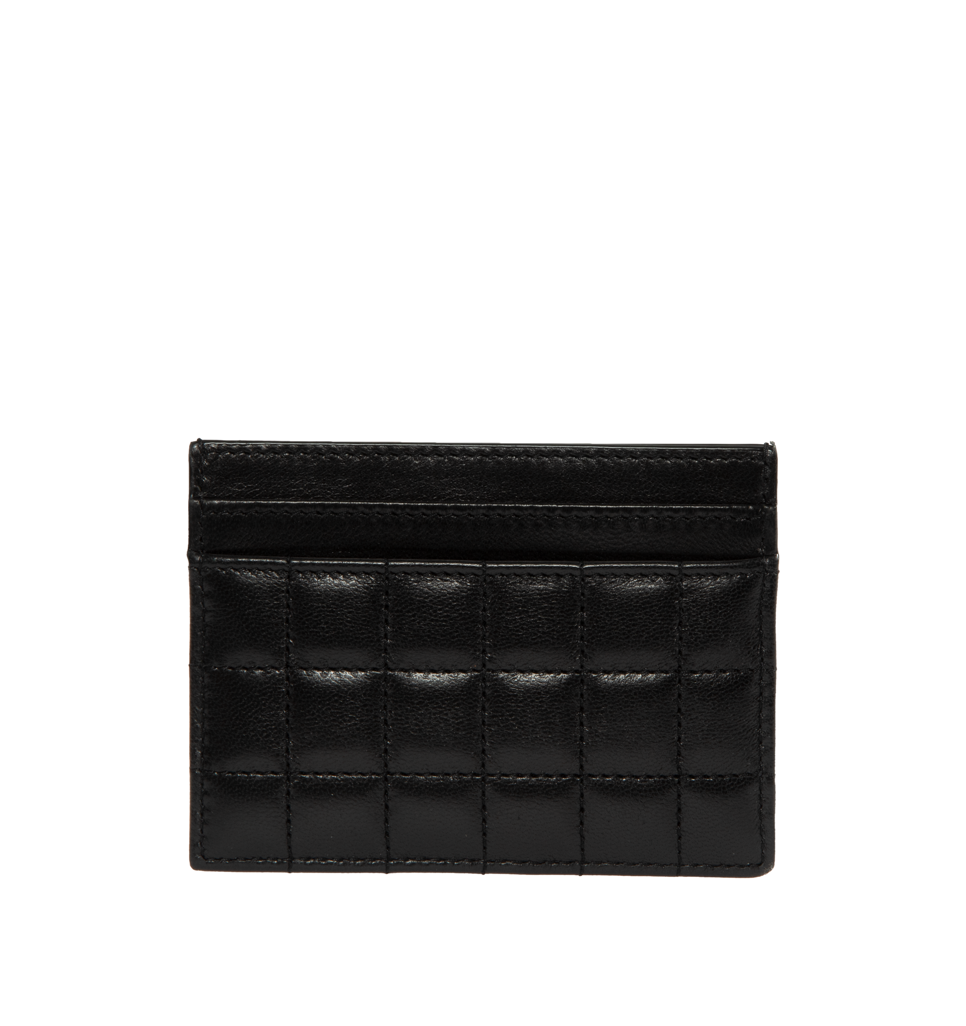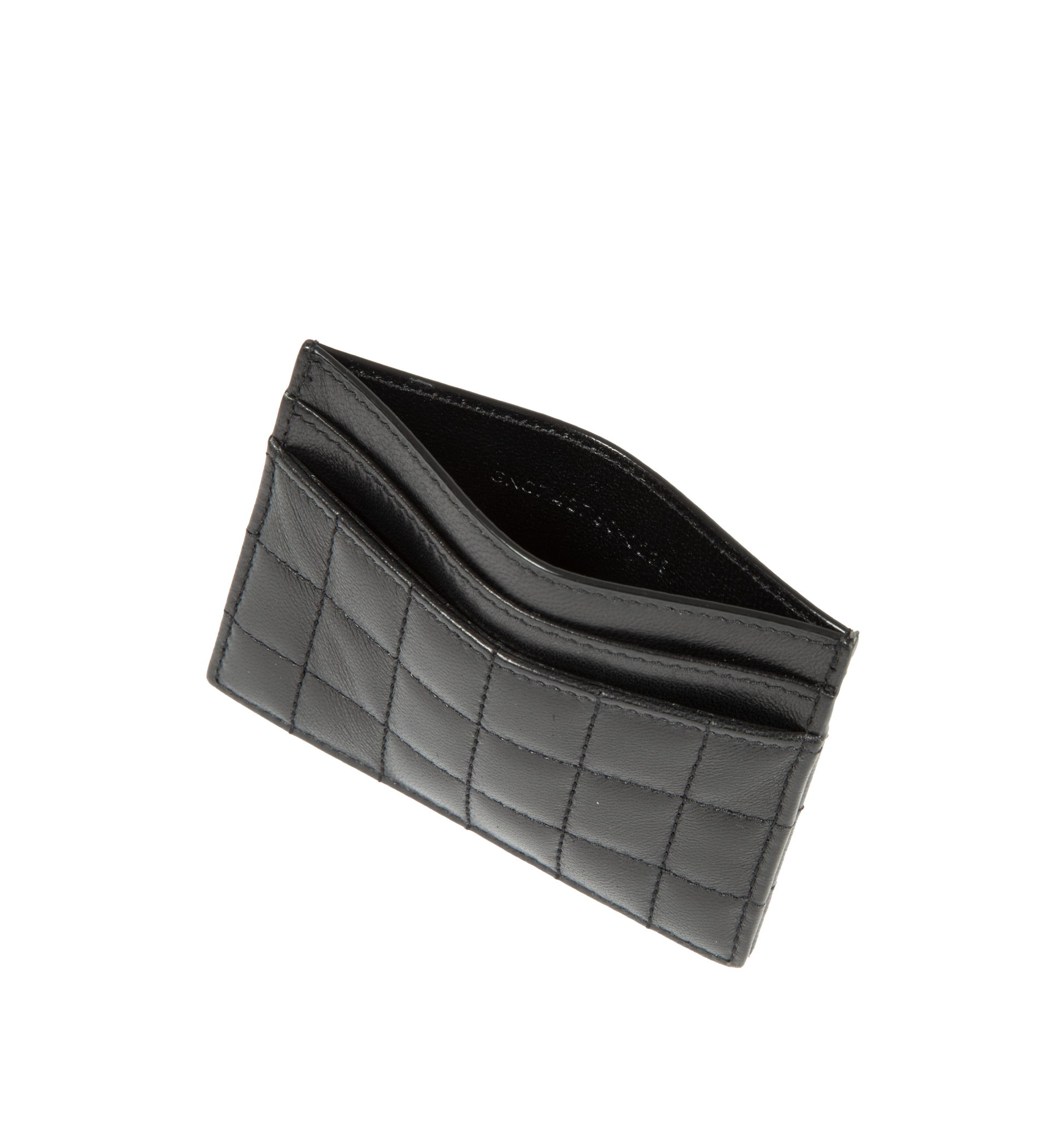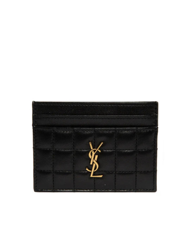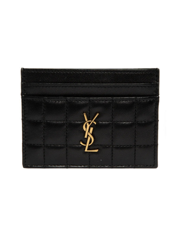 SAINT LAURENT Cassandre Matelasse Card Case featuring five card slots and leather lining. 4.1 X 3.1 X 0.3 inches. 100% lambskin. Made in Italy.
