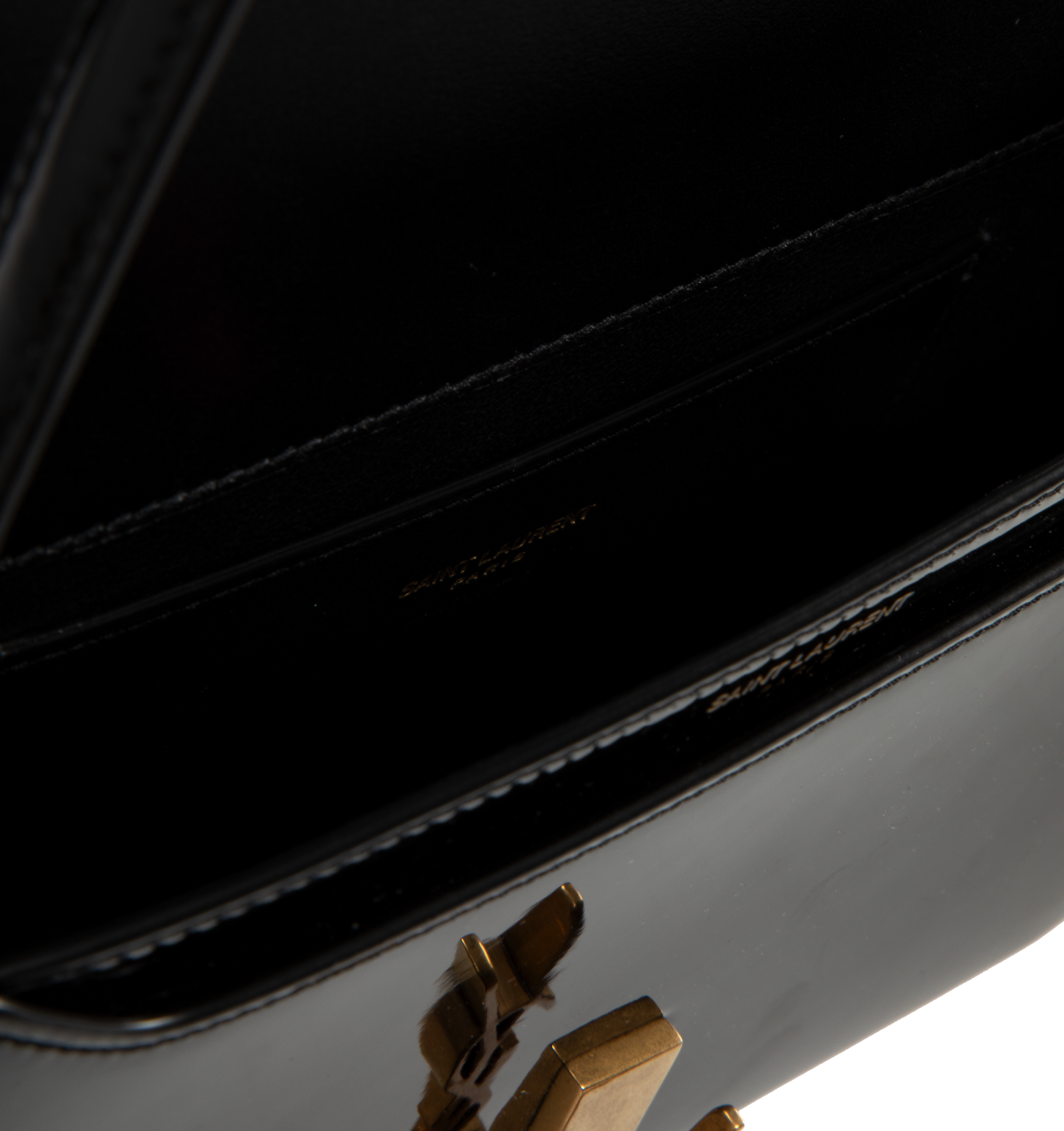 Saint Laurent YSL Hobo Demi Lune has a Cassandre logo hook closure, a fixed belt, and an interior flap pocket. H 4.3 x W 9.83 x D 1.8 Inches. Calfskin leather. Made in Italy.