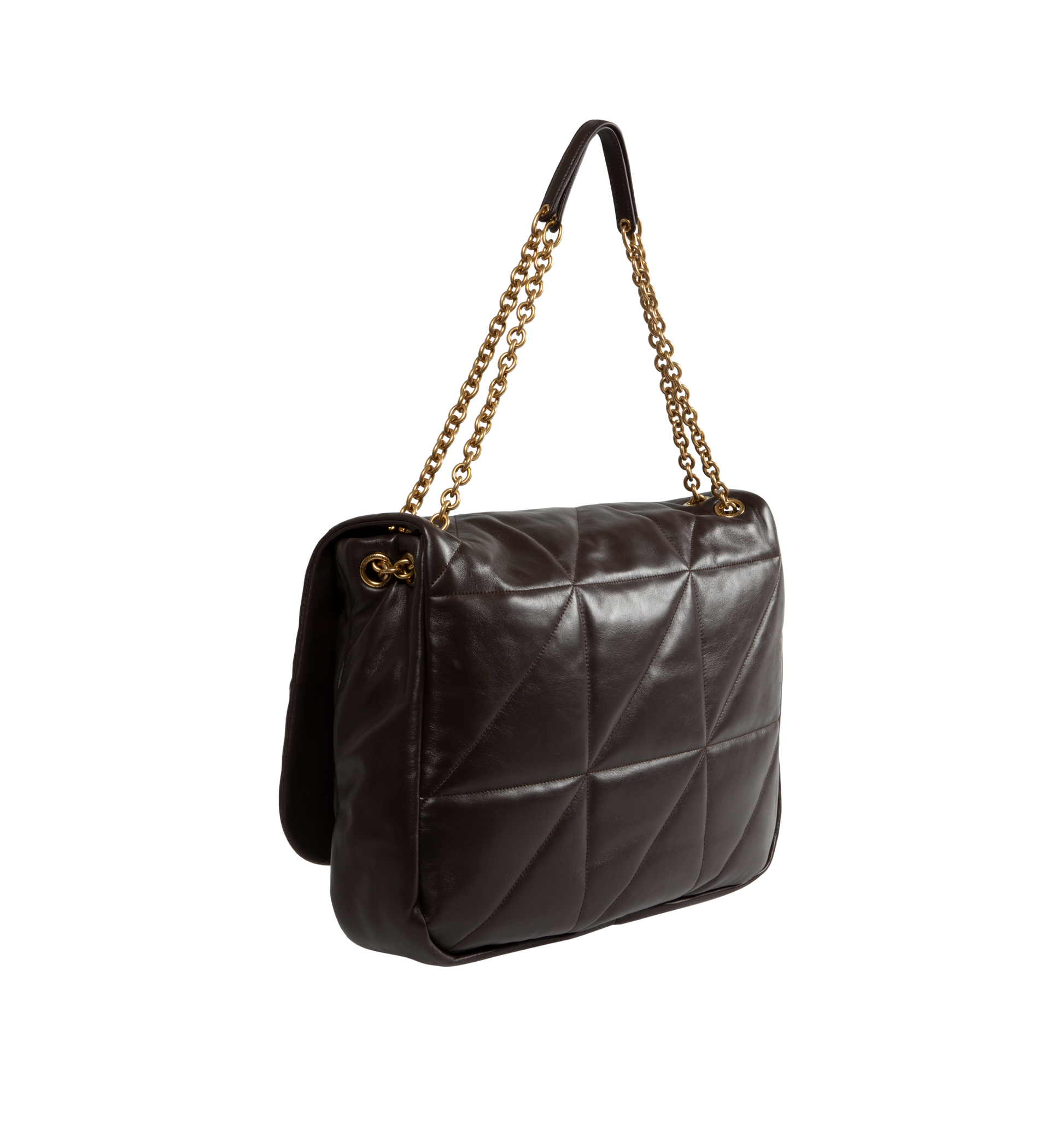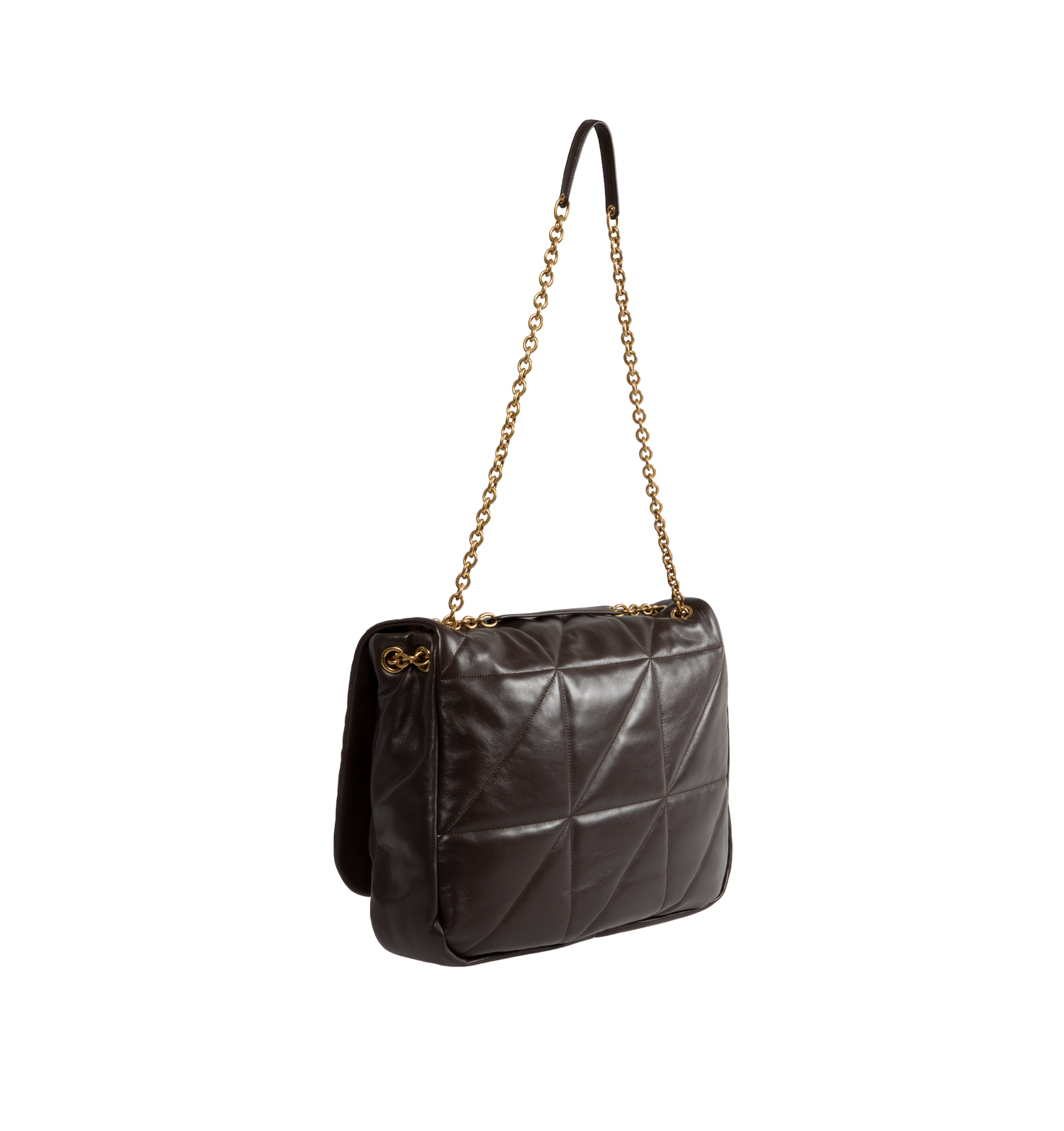 Saint Laurent Jamie 4.3 Mini Patchwork Leather Shoulder Bag has a flap top with a magnetic closure, a sliding chain shoulder strap that can be doubled for hand carrying, an interior slip pocket, and bronze-toned hardware. 4.7 H x 7.8 W x 2.7 D inches. Made in Italy.