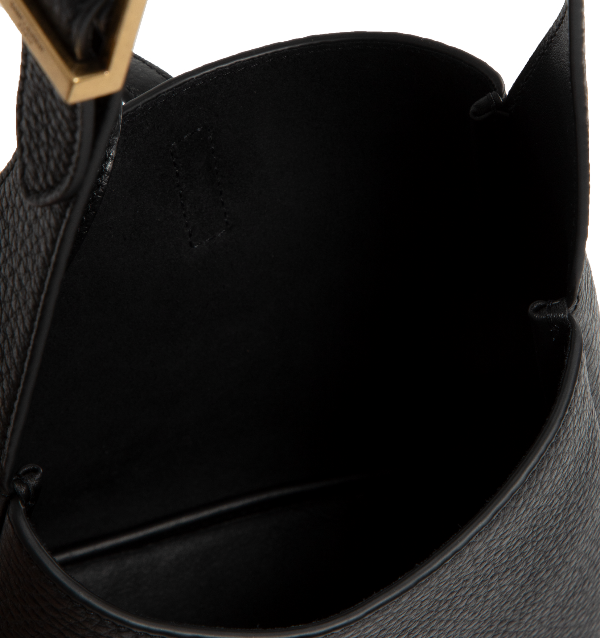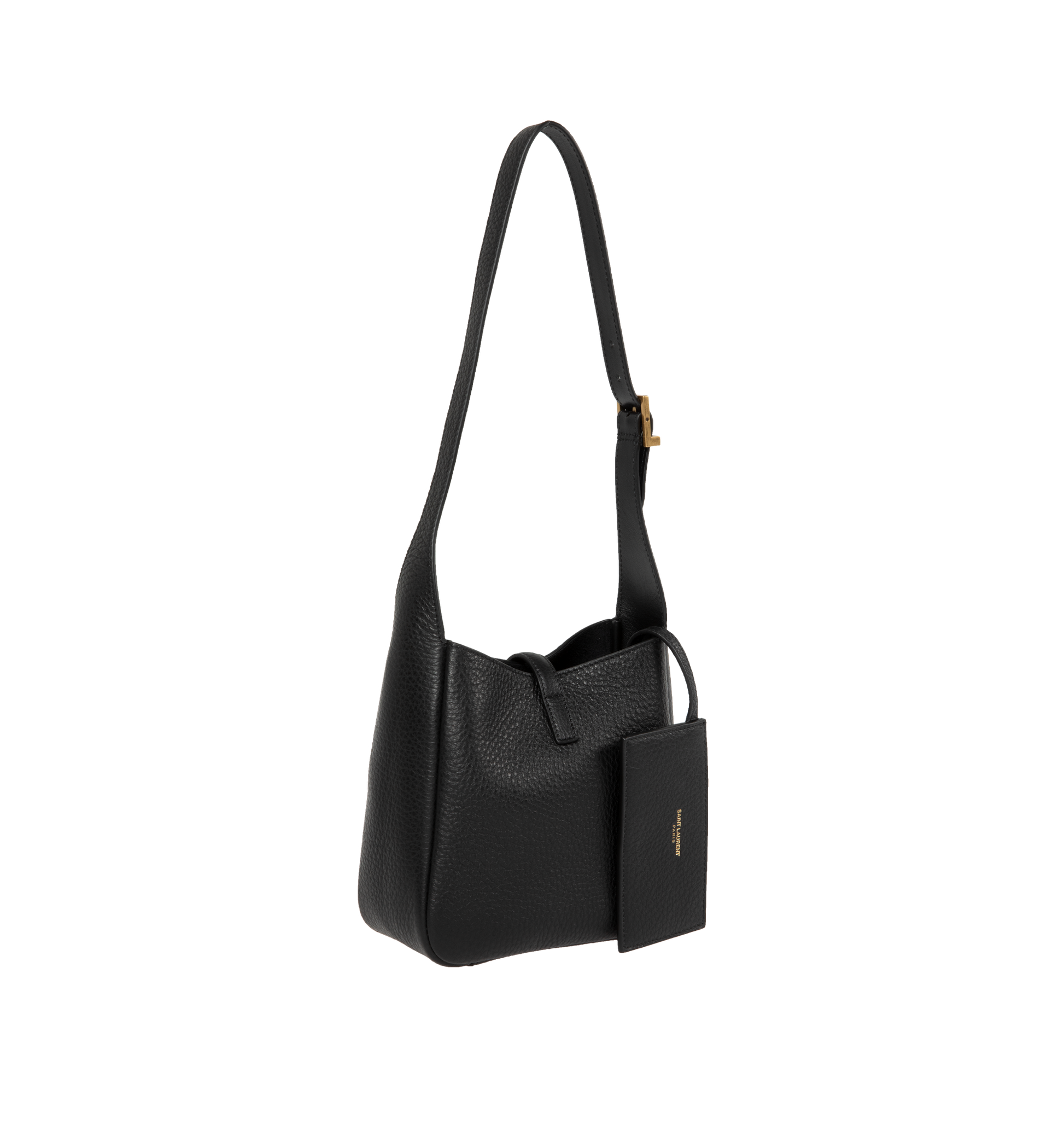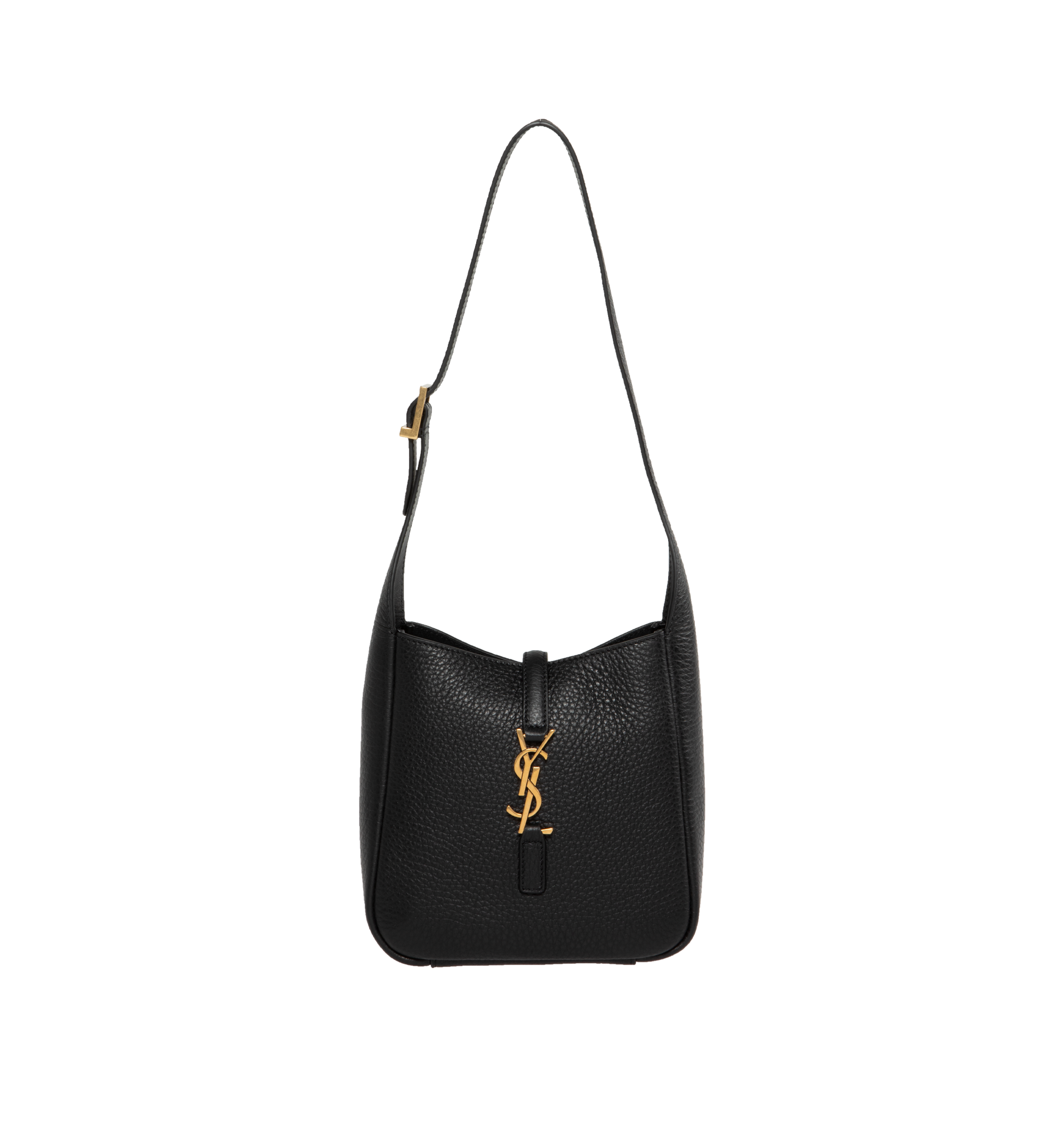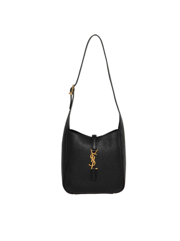 YSL LE 5 A 7 Grained Leather Bag has an adjustable shoulder strap, a spacious interior with a zipped pocket, and light bronze tone hardware. 9 x 8.6 x 3.3 inches. Suede lining. 100% calfskin. Made in Italy.