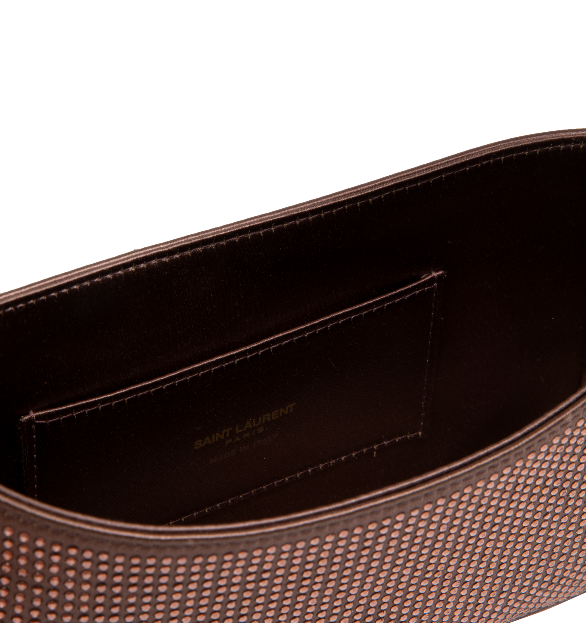 Saint Laurent YSL LE 5 À 7 Hobo Bag has an adjustable shoulder strap, an interior zipper pocket, light bronze-toned hardware, and a Cassandre leather tab detail. Lined. Made in Italy.