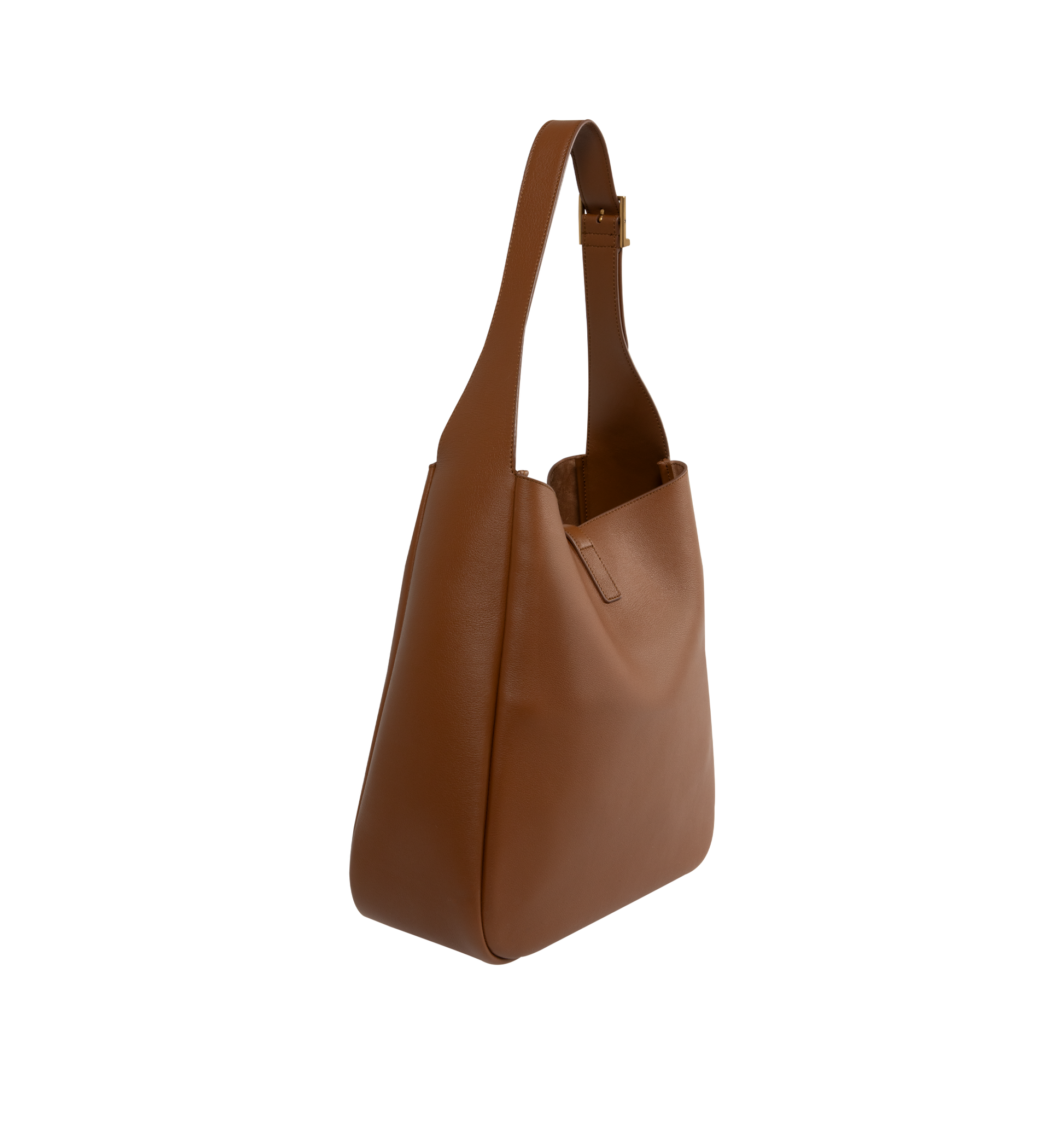 SAINT LAURENT Large Le 5 À 7 Supple featuring two main compartments, inner zip pocket, adjustable strap, open top with cassandre hook closure and suede lining. 11.8 X 12.2 X 5.1 inches. Handle drop: 11.8 inches. 100% calfskin leather. Made in Italy.