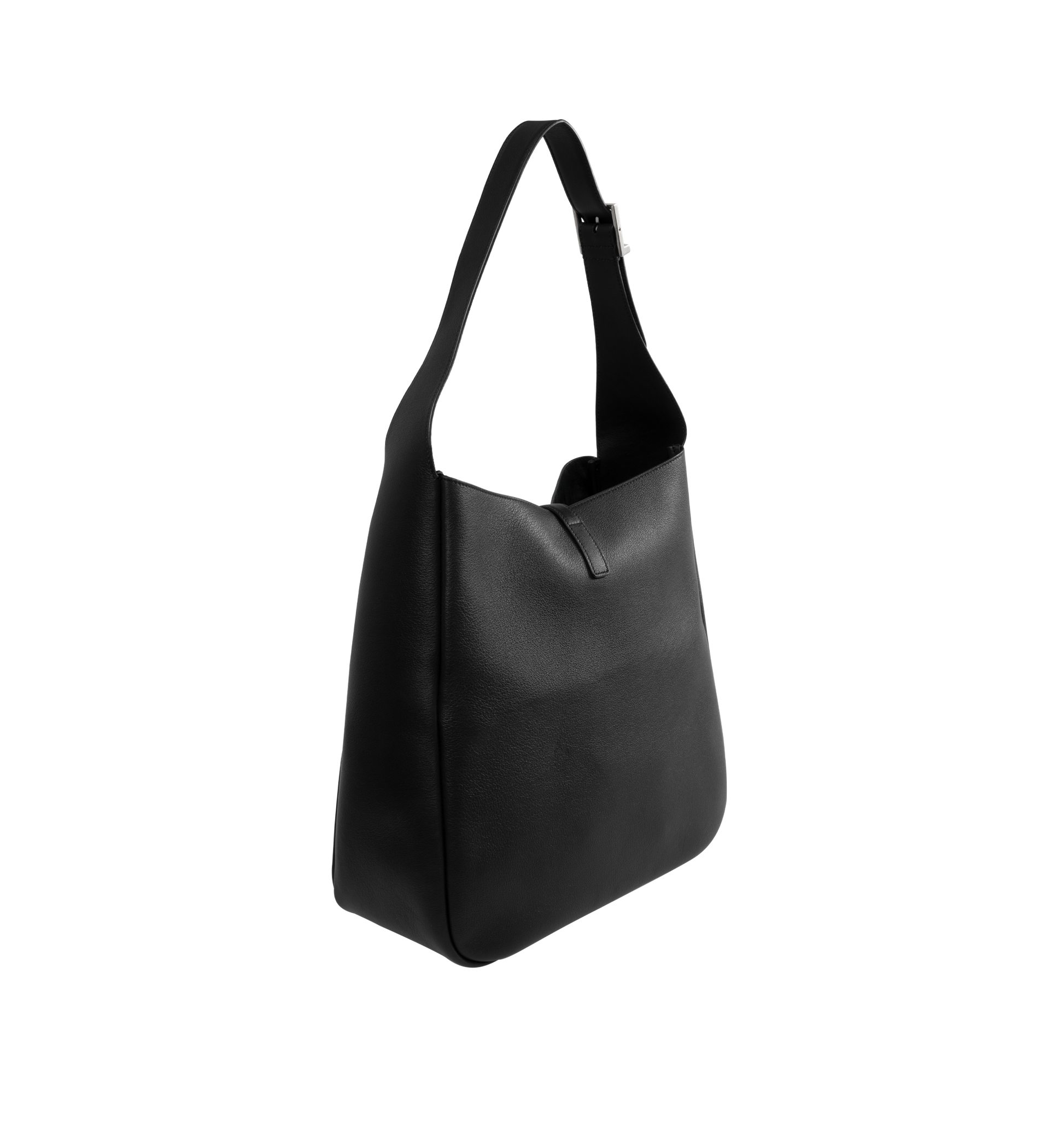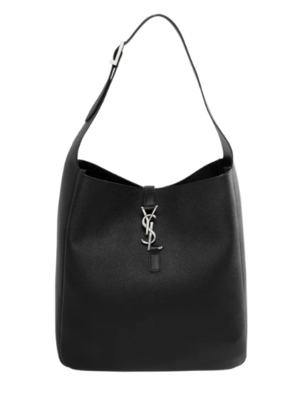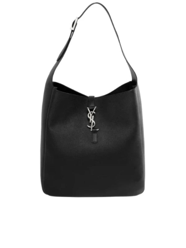 Saint Laurent Large version of LE 5 À 7 supple shoulder bag. Spacious and lined in suede, it features two main compartments and an inner zip pocket, leather tab closure decorated with the CASSANDRE, bronze-toned hardware, and adjustable strap for bespoke carry options. Measures 11.8 x 12.2 x 5.1 inches with 11.8 inch handle drop. Calfskin leather. Made in Italy.