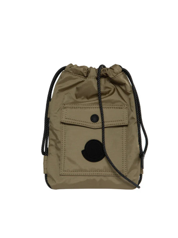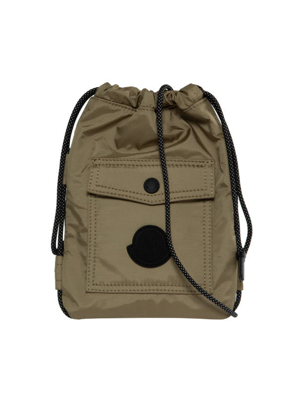 MONCLER Makaio Drawstring Bag featuring water-repellent nylon lining, leather trim, climbing cord drawstring closure, outer pocket, inner media pocket, climbing cord shoulder strap and silicone logo patch. L 18 cm x H 23 cm x W 2 cm. 100% polyamide/nylon.