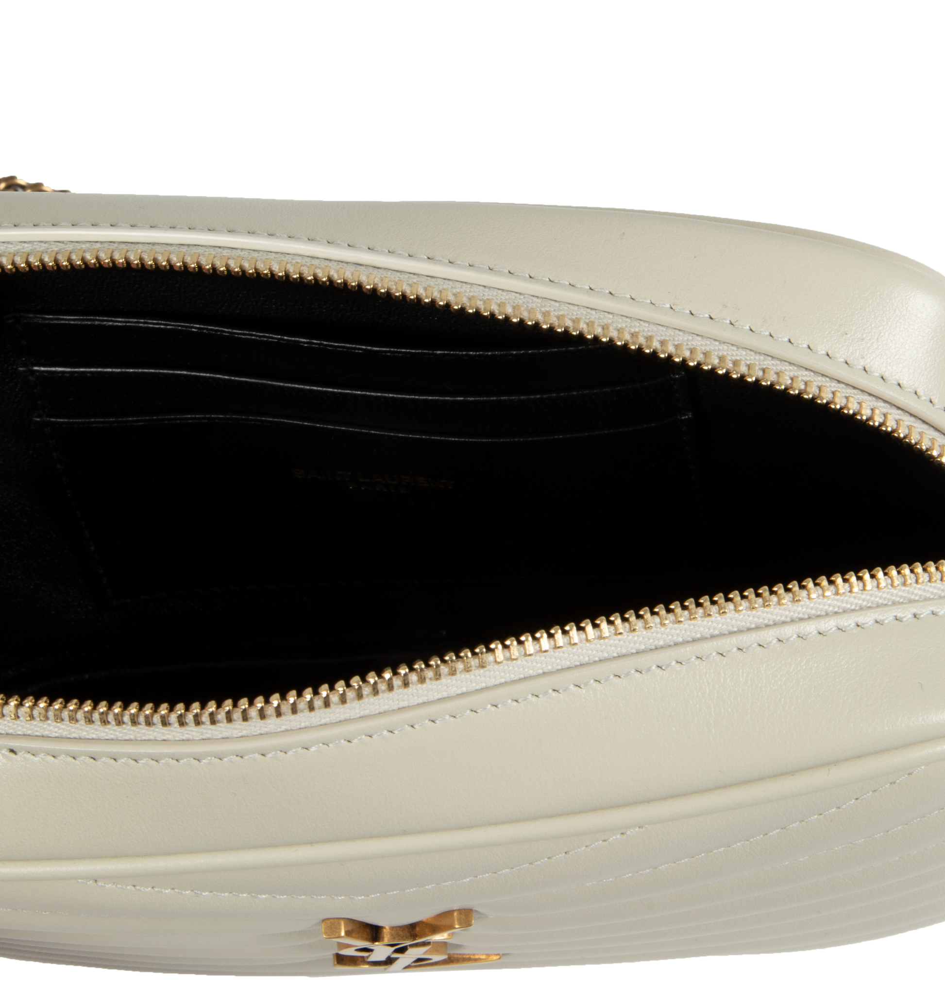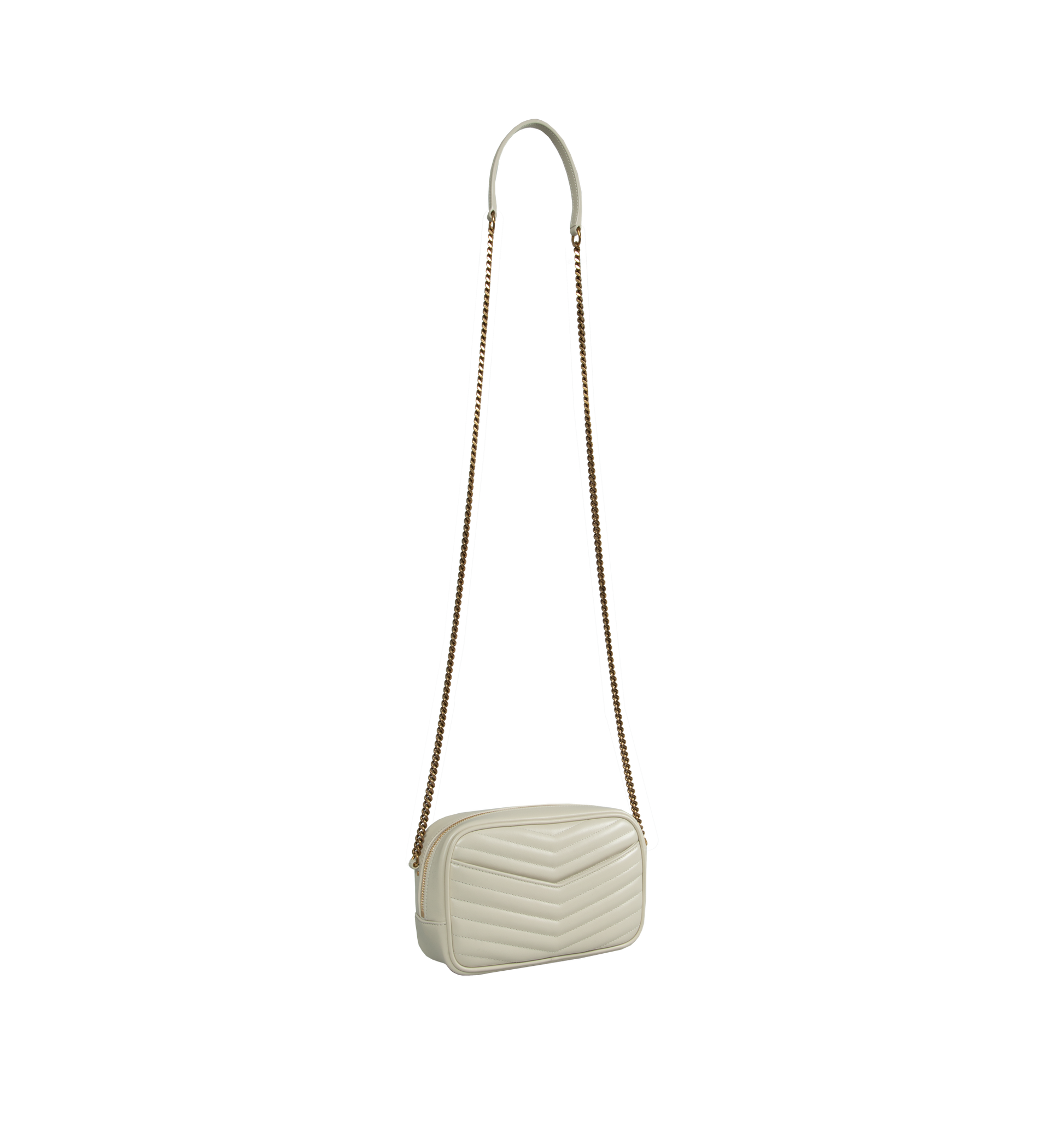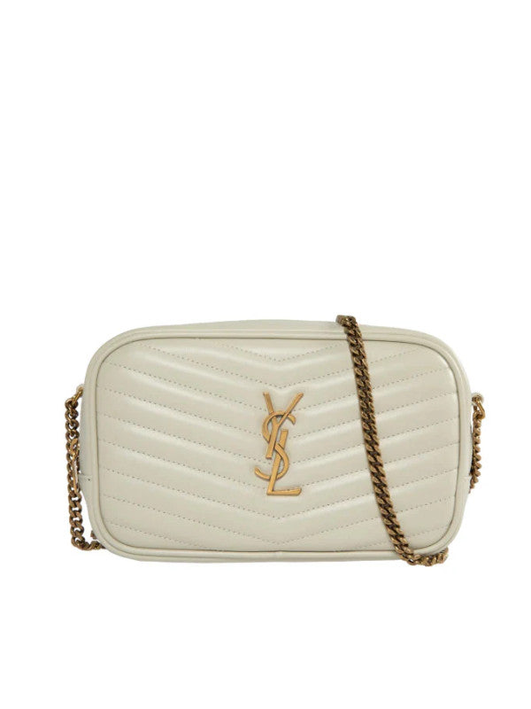 SAINT LAURENT Mini Lou with Chain featuring zip closure, back slip pocket, three card slots and leather lining. 7.5 X 4.1 X 2 inches. 100% calfskin.
