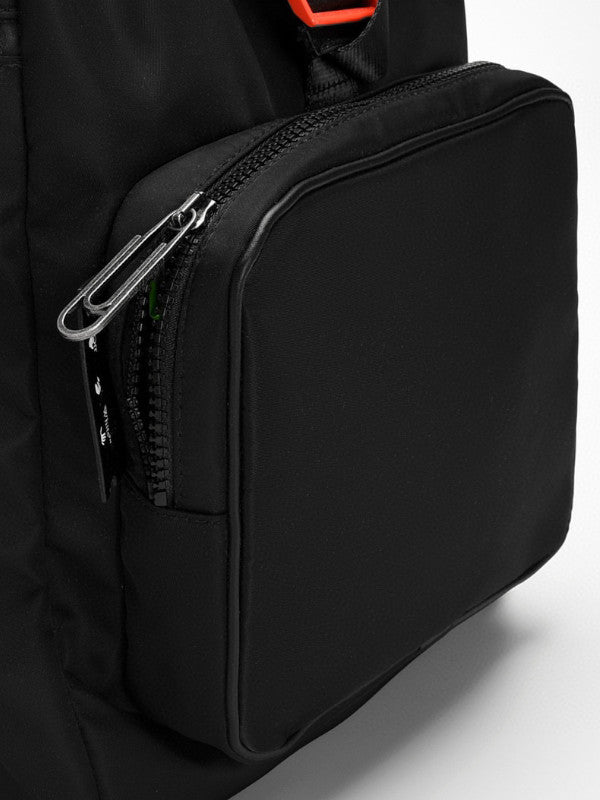 Introducing the stylish and functional Off-White Black Nylon Backpack, perfect for daily use and travel. Crafted from high-quality materials, this backpack ensures durability and comfort while offering ample storage space for all your essentials.