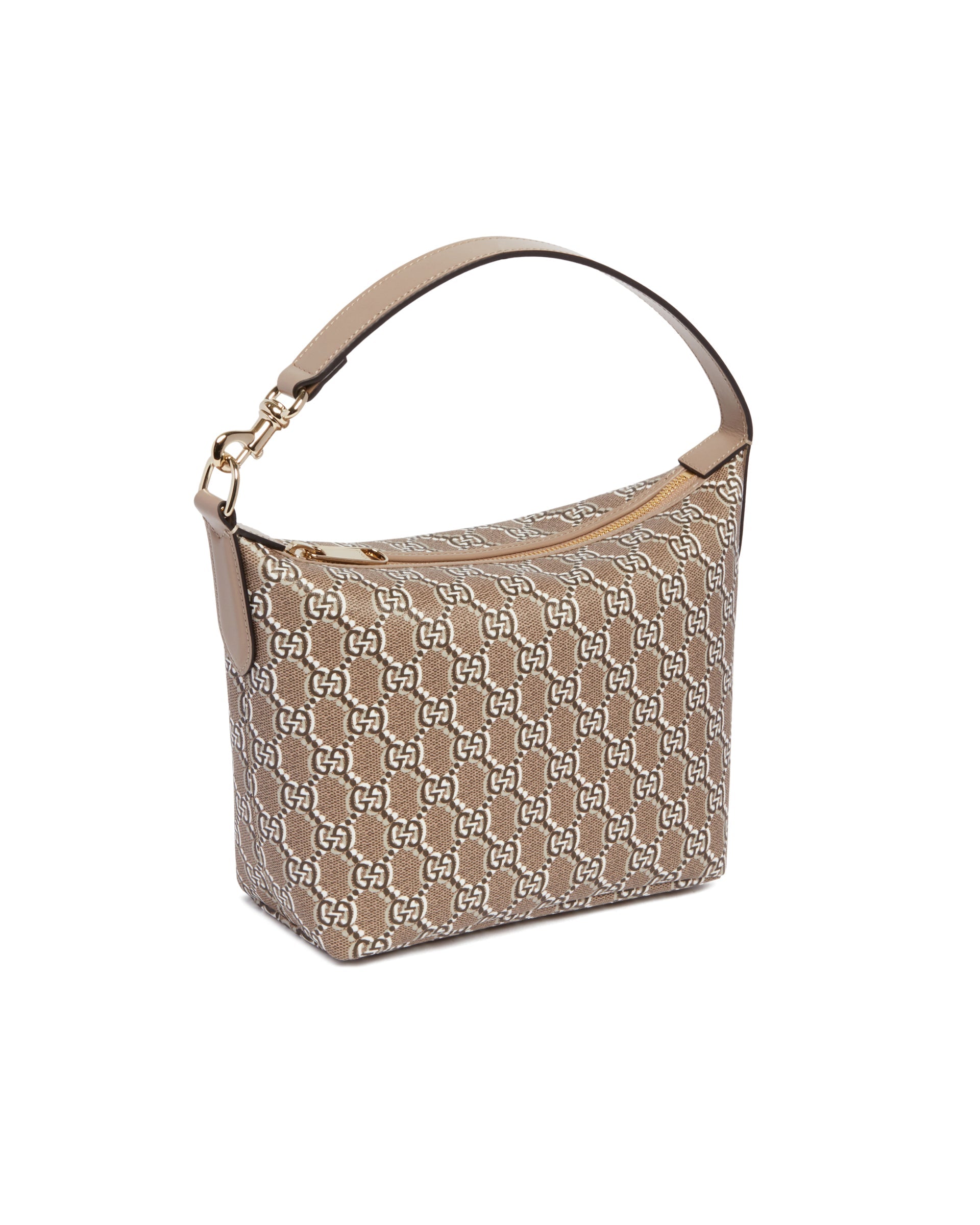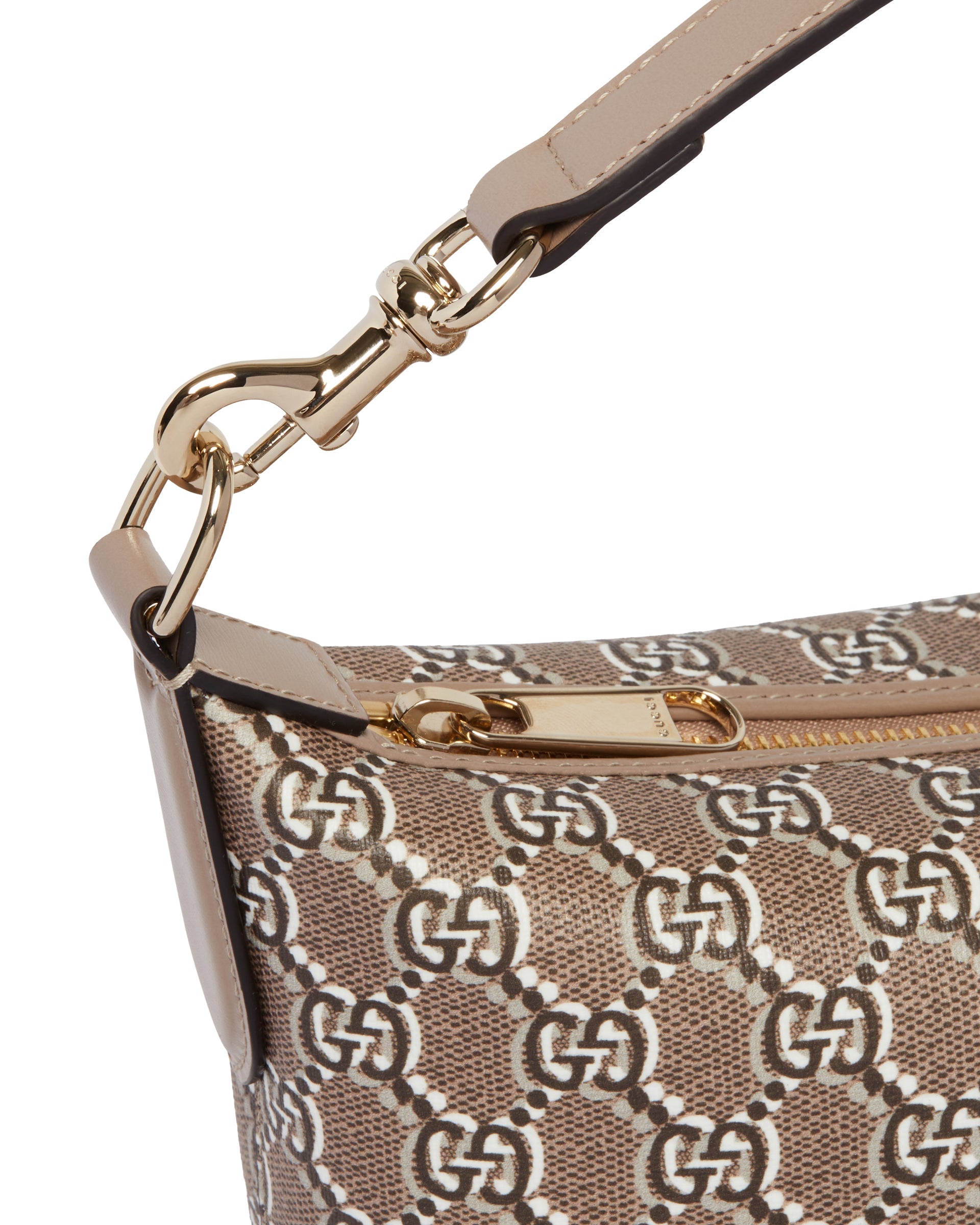 Gucci Ophidia Super Mini Bag. Beige GG Supreme fabric, brown leather trims, green and red Web stripe. Cotton and linen lining, internal zip pocket, semi-detachable shoulder strap, zip closure. Size (cm): 27X18X9