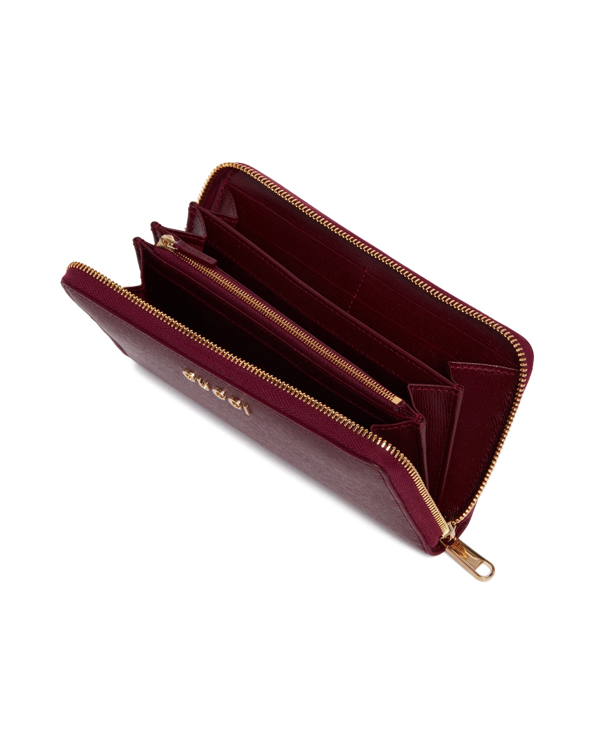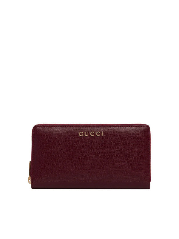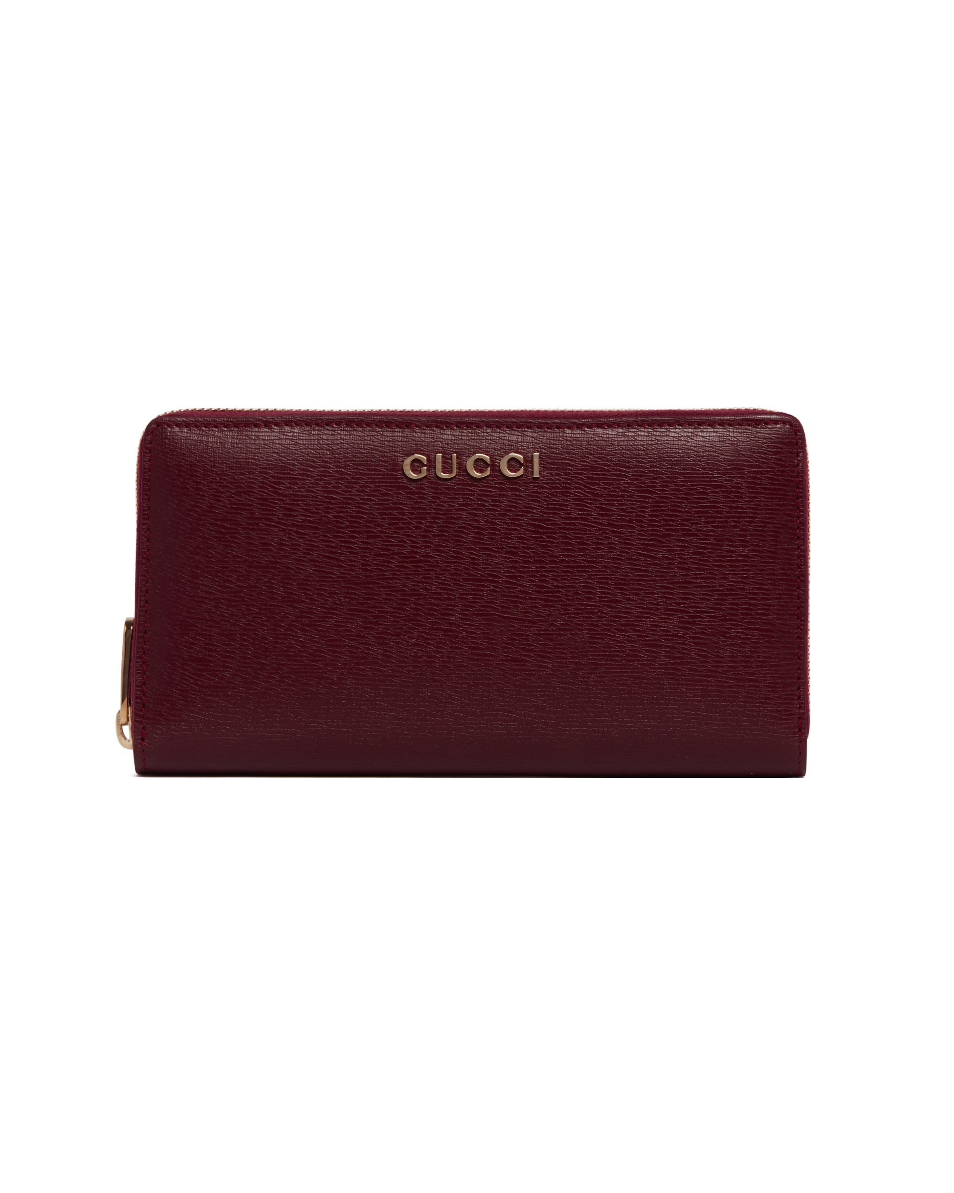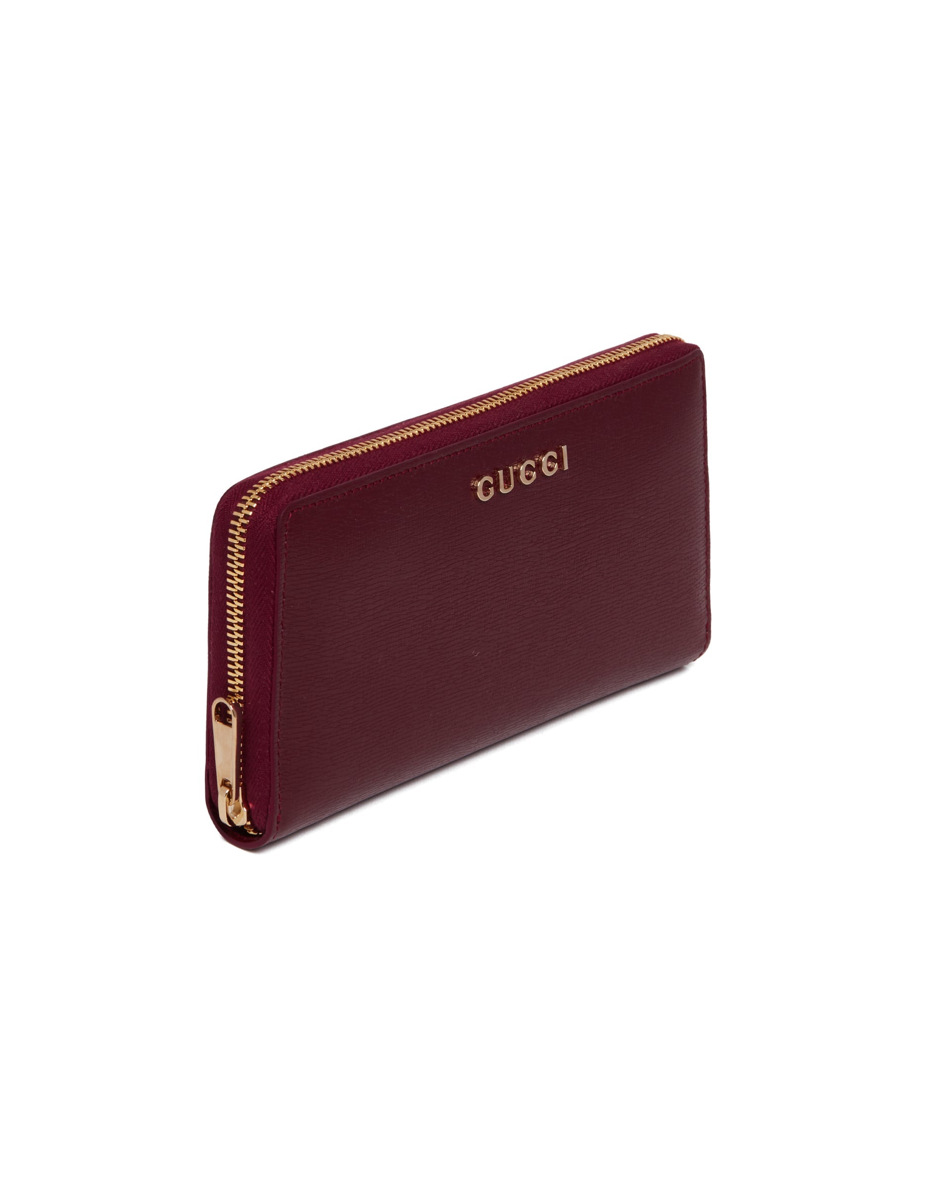 Gucci Red Ancora Leather Wallet. Red leather, light gold-tone metal details, taffeta lining. Script Gucci detail, 12 card slots, zippered coin pocket, 3 bill compartments, zip-around closure. Size (cm): 17X12X0,5