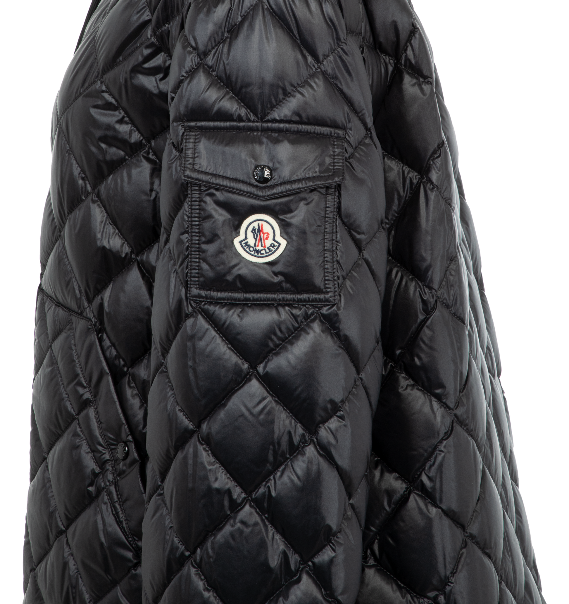 Moncler Diamond Puffer Jacket has a 2 way zip front closure, drawstring hood, elastic cuffs, and front snap welt pockets. Lined. 100% nylon.