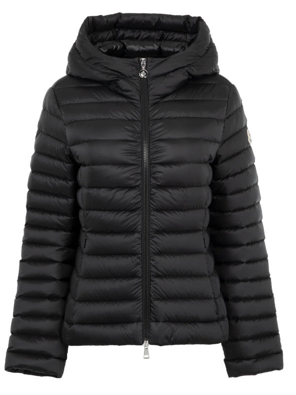 Moncler Women's Ige Short Down Puffer Jacket has an attached hood, a 2-way zip front, an embroidered logo patch, side pockets, and a classic fit. Down fill. Nylon, polyamide exterior.