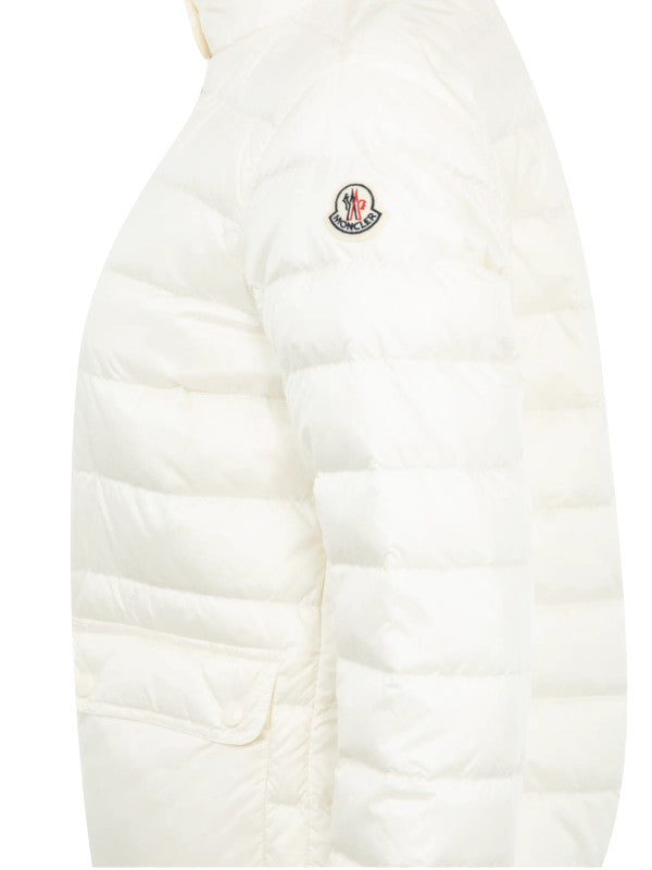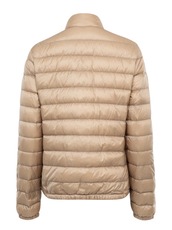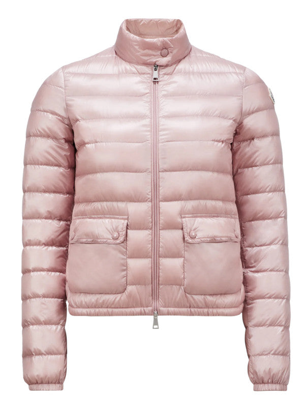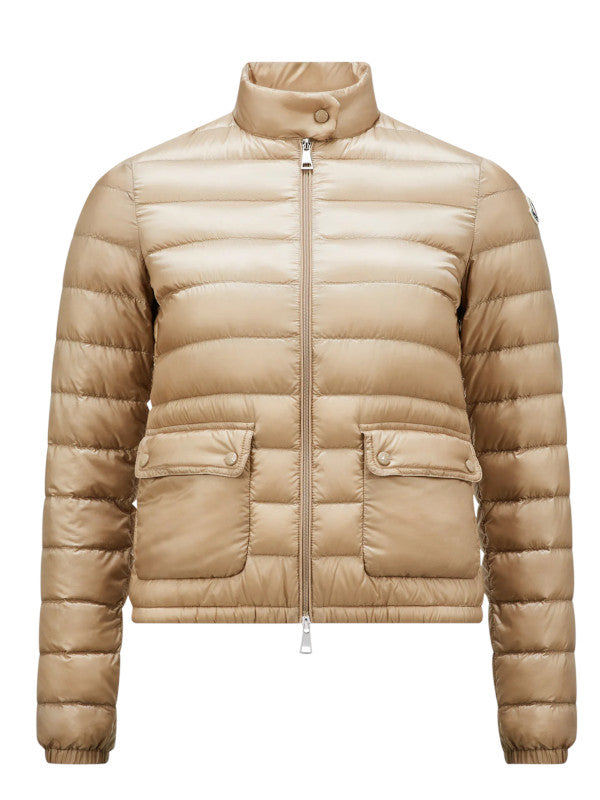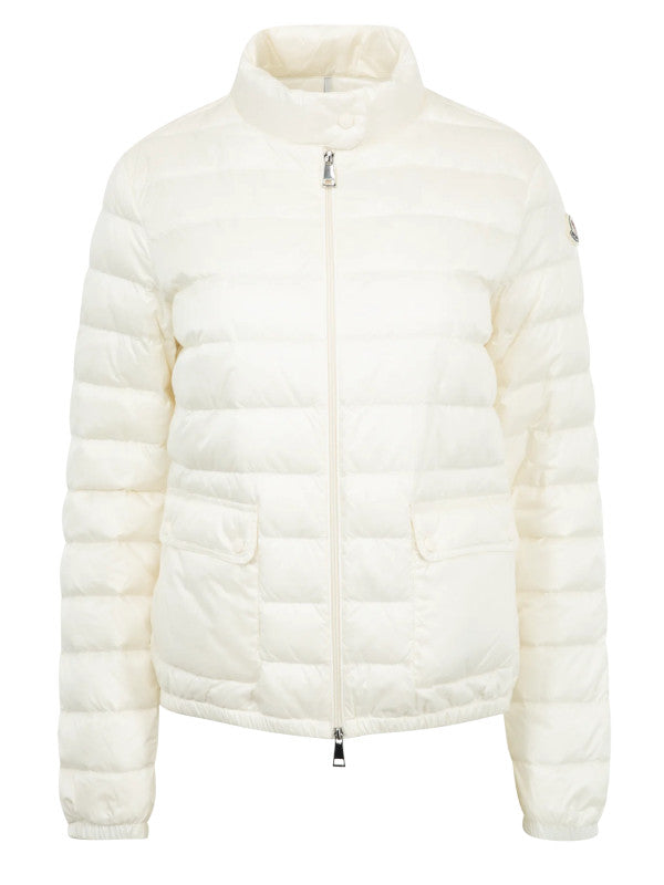 MONCLER Lans Short Down Jacket featuring tech fabric with down fill, standup collar featuring snap buttons, zip-up closure, flap pockets and logo patch at sleeve. 100% polyamide/nylon. Padding: 90% down, 10% feather. Made in Armenia.