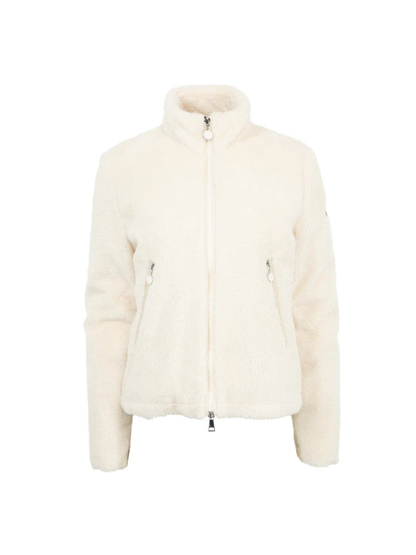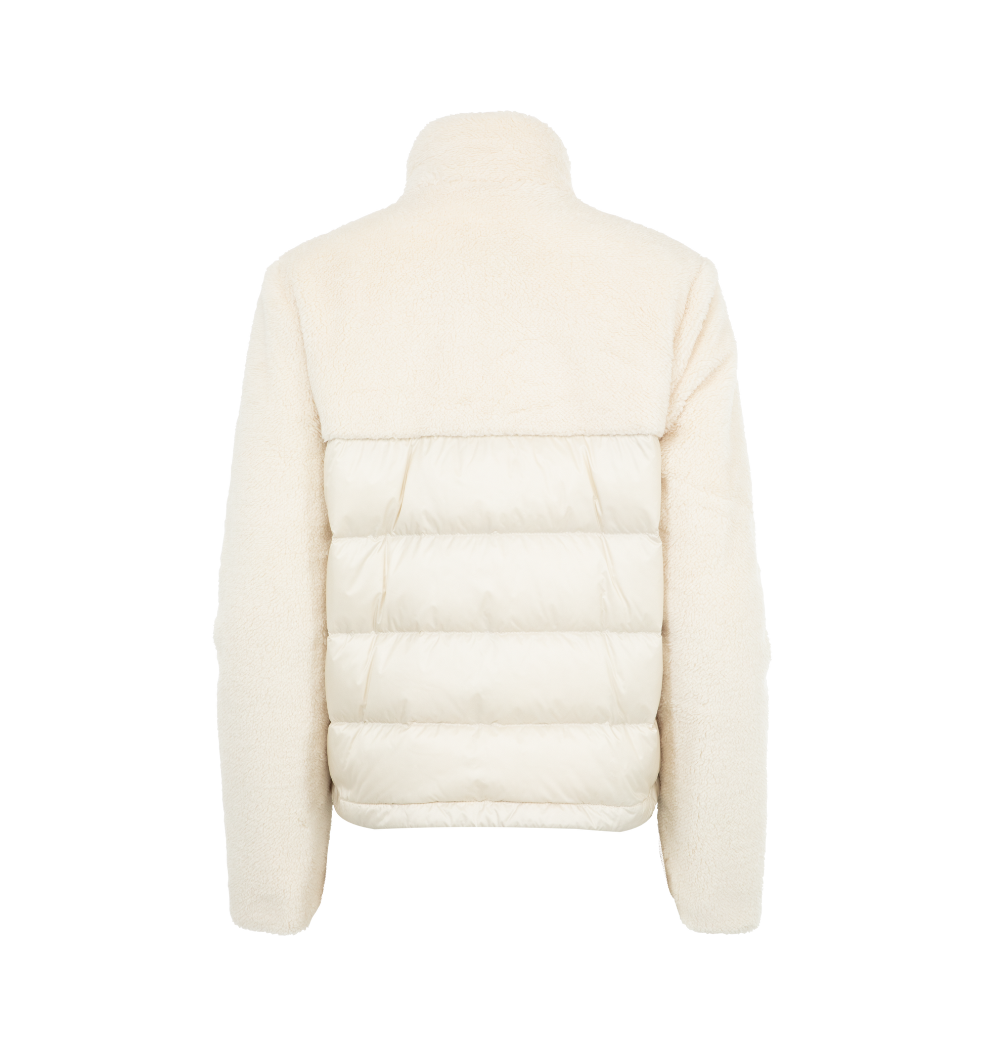 Moncler Women's Polignac short down jacket crafted from teddy. Down-filled Puffer style with recycled longue saison nylon fabric back adding extra warmth without feeling heavy. Features zipped closure and zipped pockets.