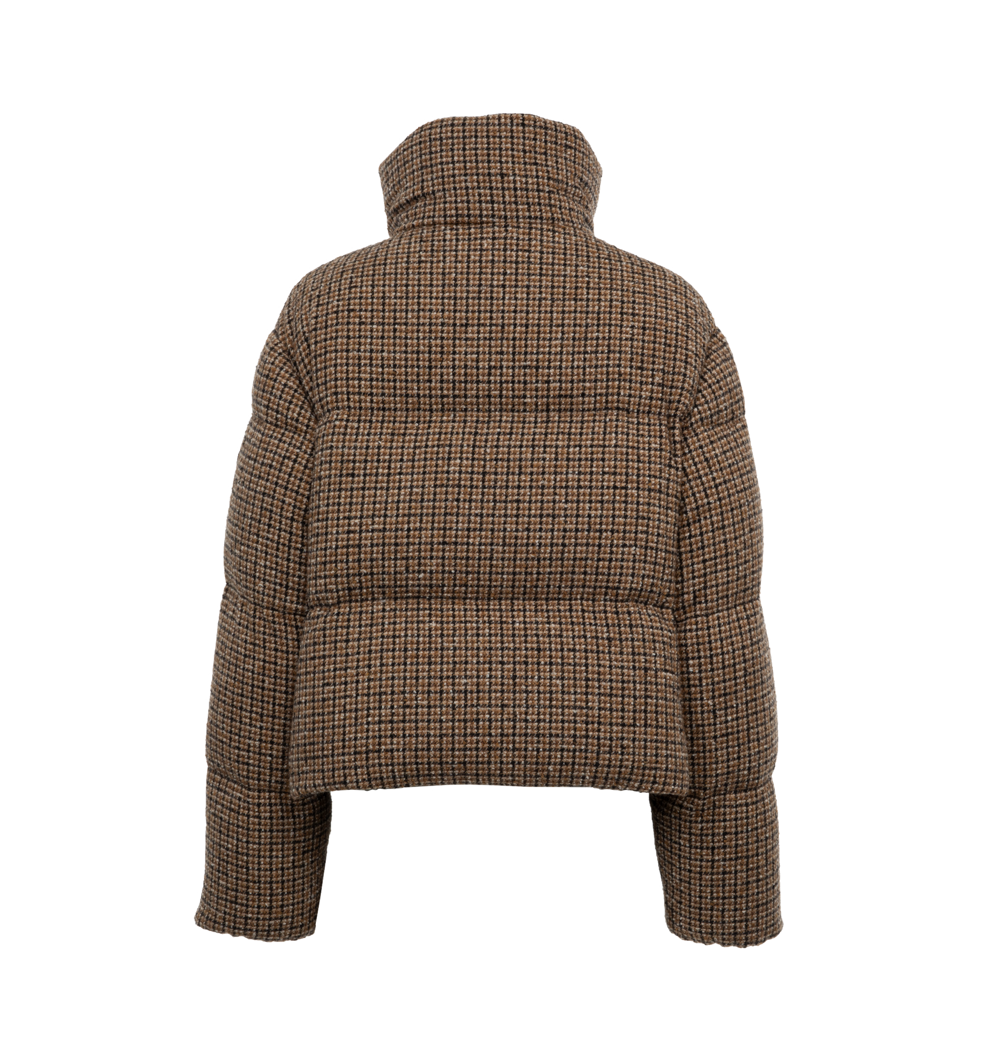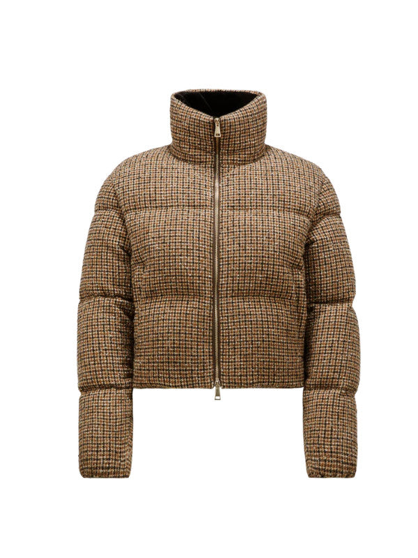 MONCLER Seboune Short Down Jacket featuring wool bouclé, polyester lining, down-filled, collar with velvet lining, zipper closure, pockets with snap button closure and elastic hem with drawstring fastening. 58% wool, 24% polyamide/nylon, 18% lyocell. Lining: 100% polyester. Collar lining: 100% cotton. Padding: 90% down, 10% feather.Product code