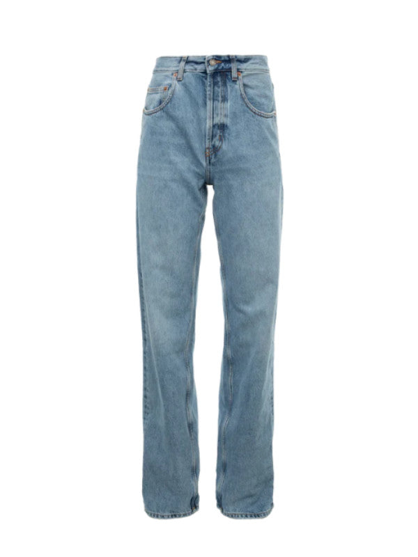 SAINT LAURENT Long Baggy Jeans featuring high waist, five pocket style, baggy fit, long, wide leg and button fly. 100% cotton. Made in Italy.