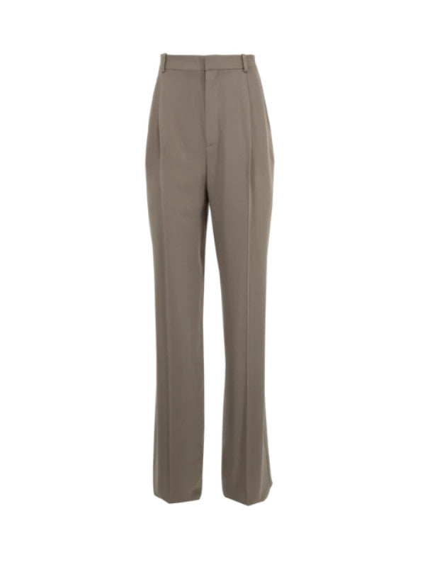 SAINT LAURENT Tailored Pant featuring high-waist, a relaxed straight leg with a single pleat and center crease, concealed front button, hook, and zip closure, two slash pockets at the front, two welt pockets at the back and waistband with belt loops. 100% silk.