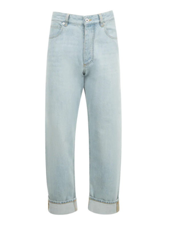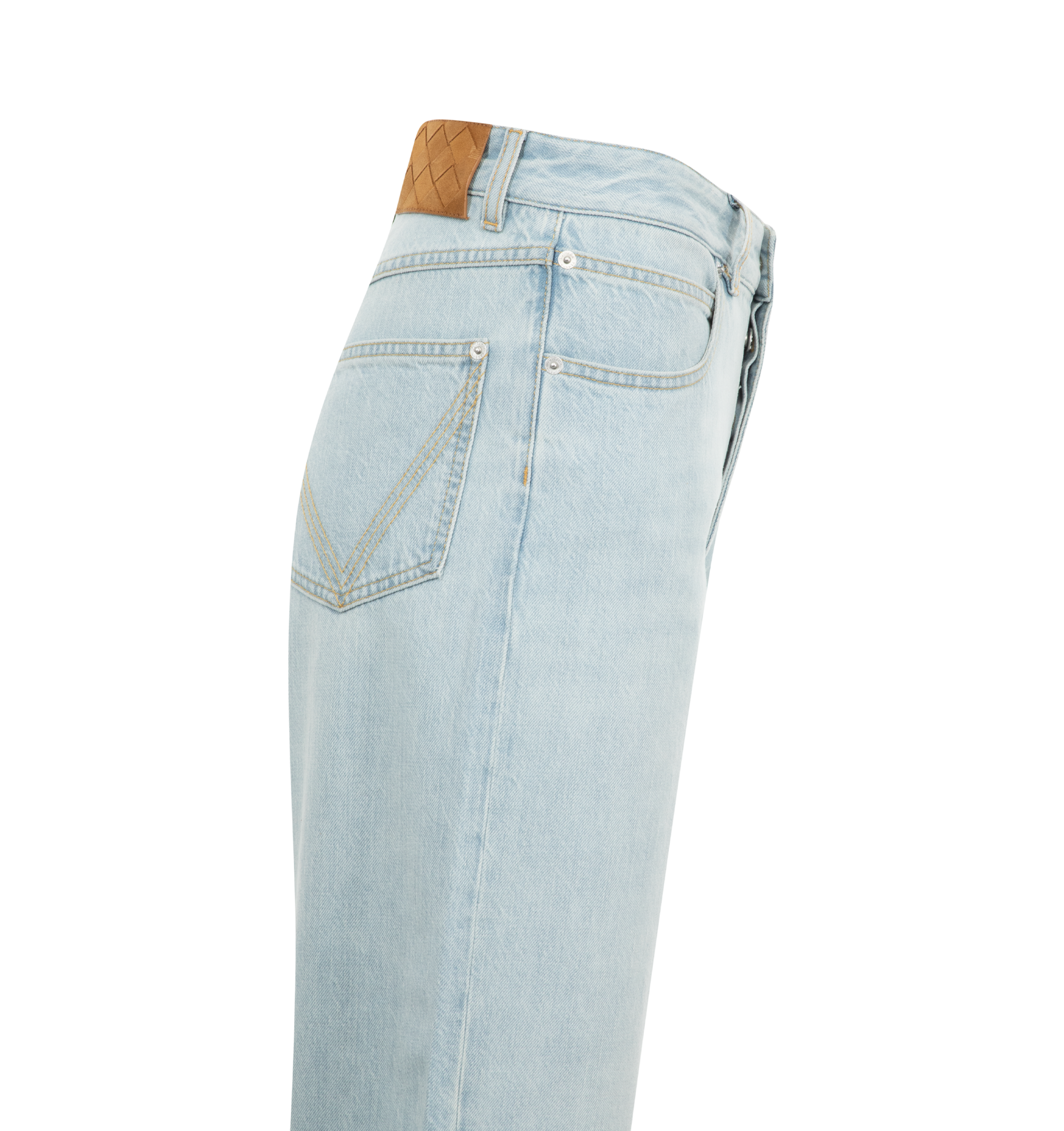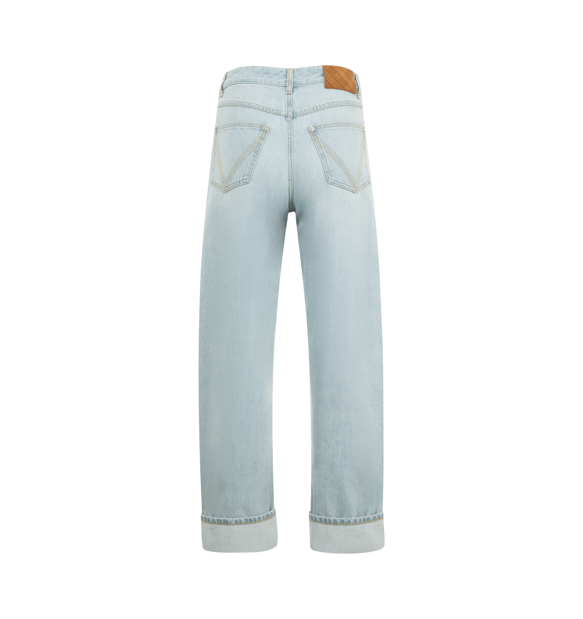 Bottega Veneta Turned Up Jeans are a 5-pocket style with wide legs and a mid-waist rise, they have turned-up hems and a rear suede patch. 100% cotton. Made in Italy.