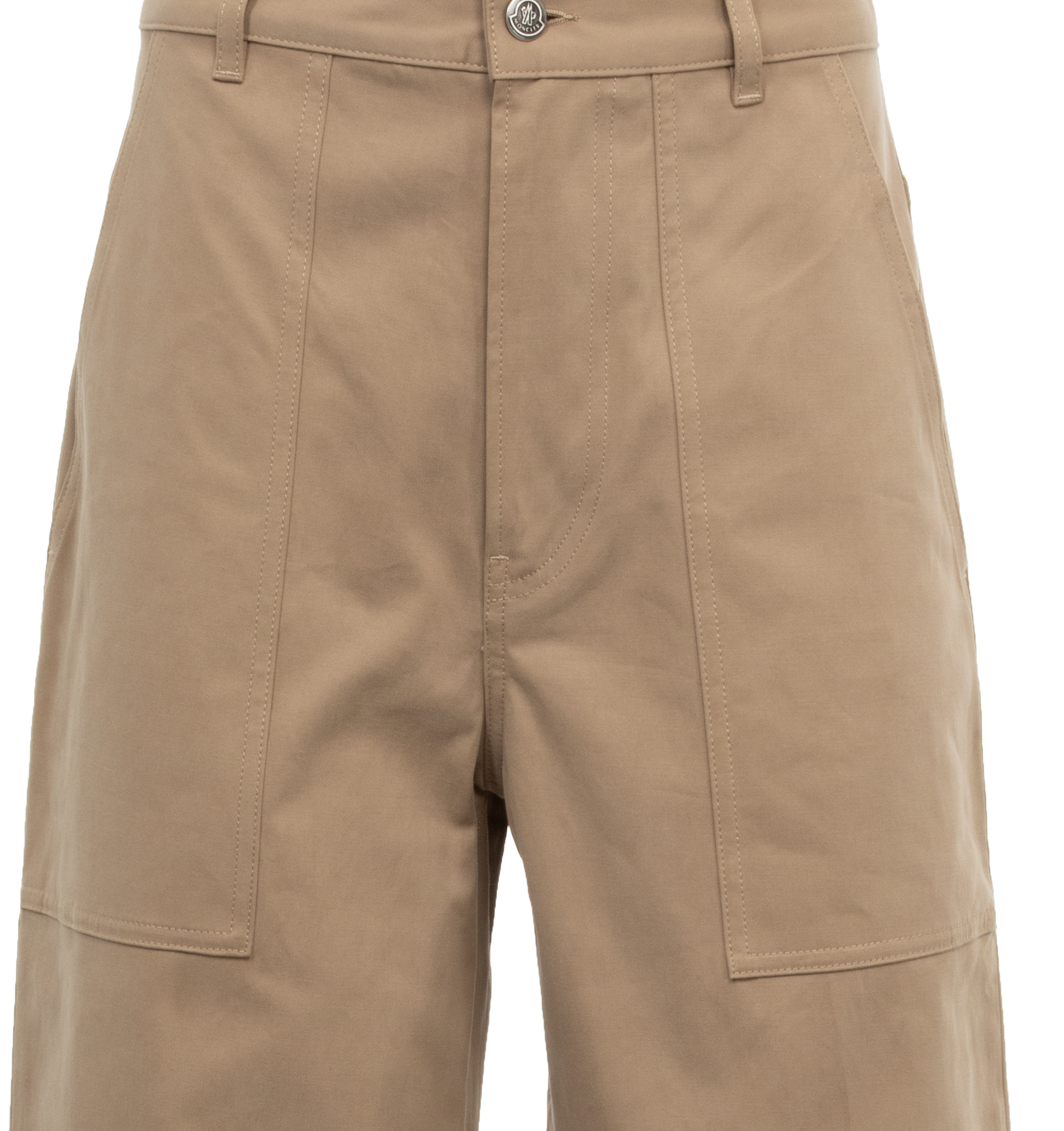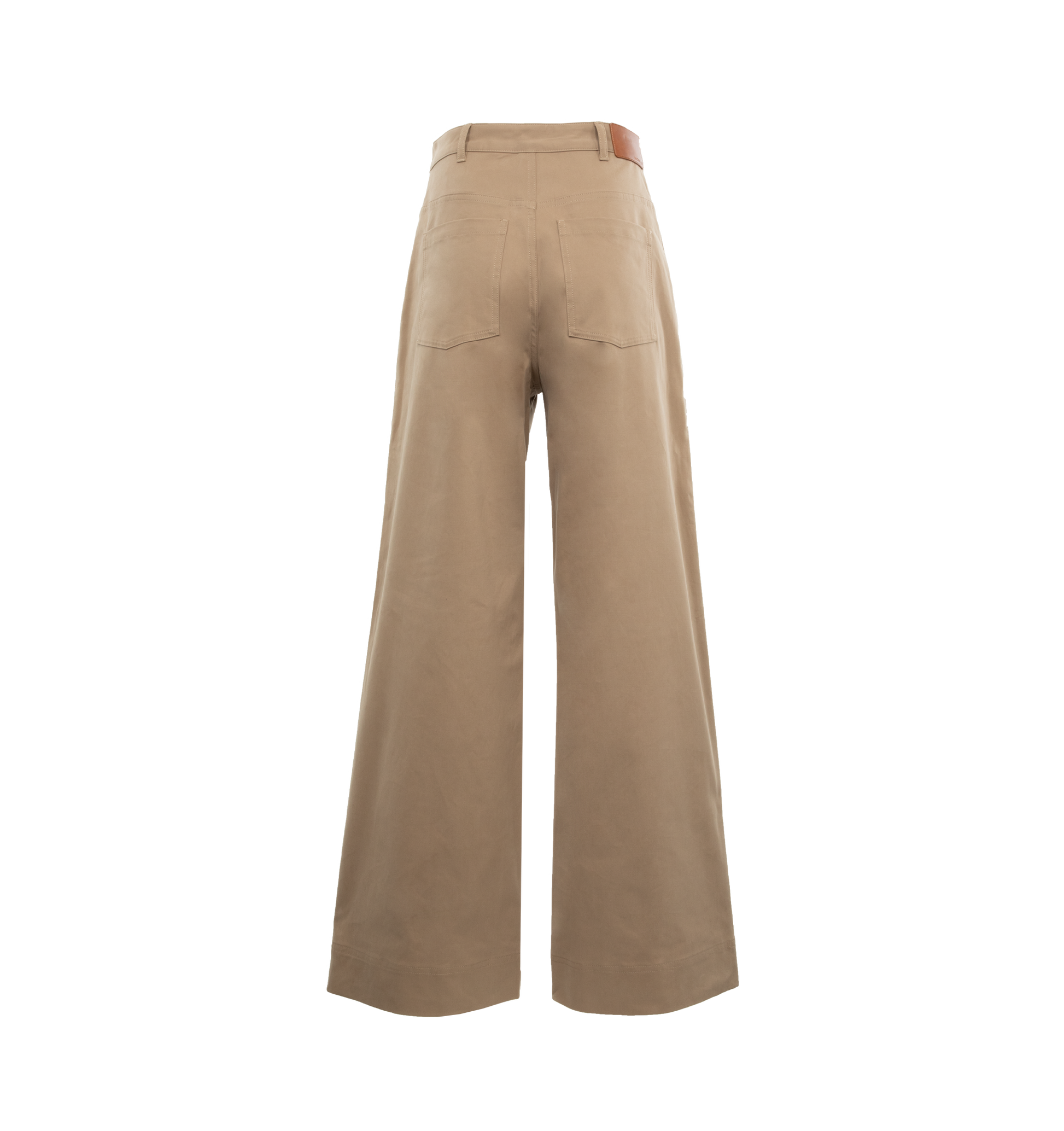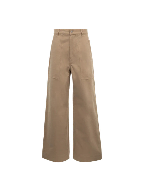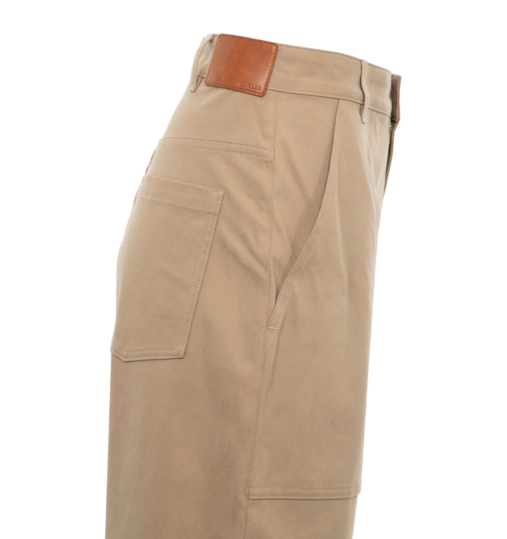 MONCLER Wide Leg Trousers featuring high waist, oversized front pockets, two back pockets, button zip closure, wide flare legs and belt loops. 100% cotton.