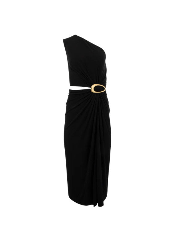 Bottega Veneta Asymmetrical dress in mattre crepe viscose jersey featuring buckle detail and zipper closure. Material: 100% viscose. Made in: Italy.