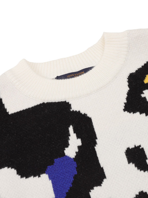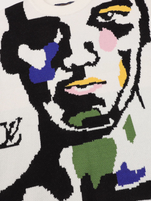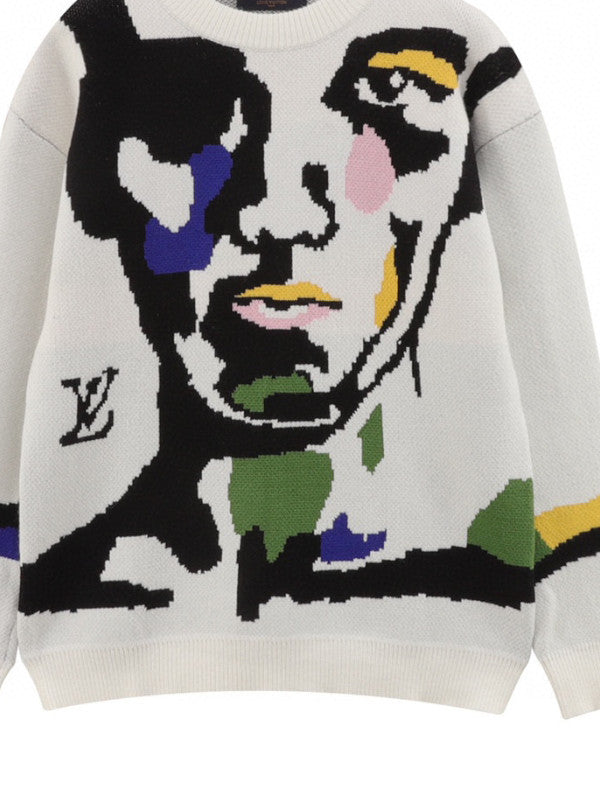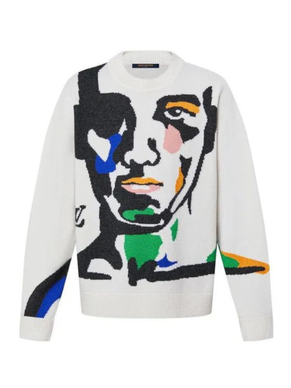 Introducing the Louis Vuitton Artistic Graphic Sweater, a bold and modern piece that redefines luxury streetwear. Crafted from premium wool, this standout sweater features a striking abstract face design in vibrant colors, showcasing Louis Vuitton's unique artistic flair. The intricate jacquard pattern adds a textured element, bringing the artwork to life.