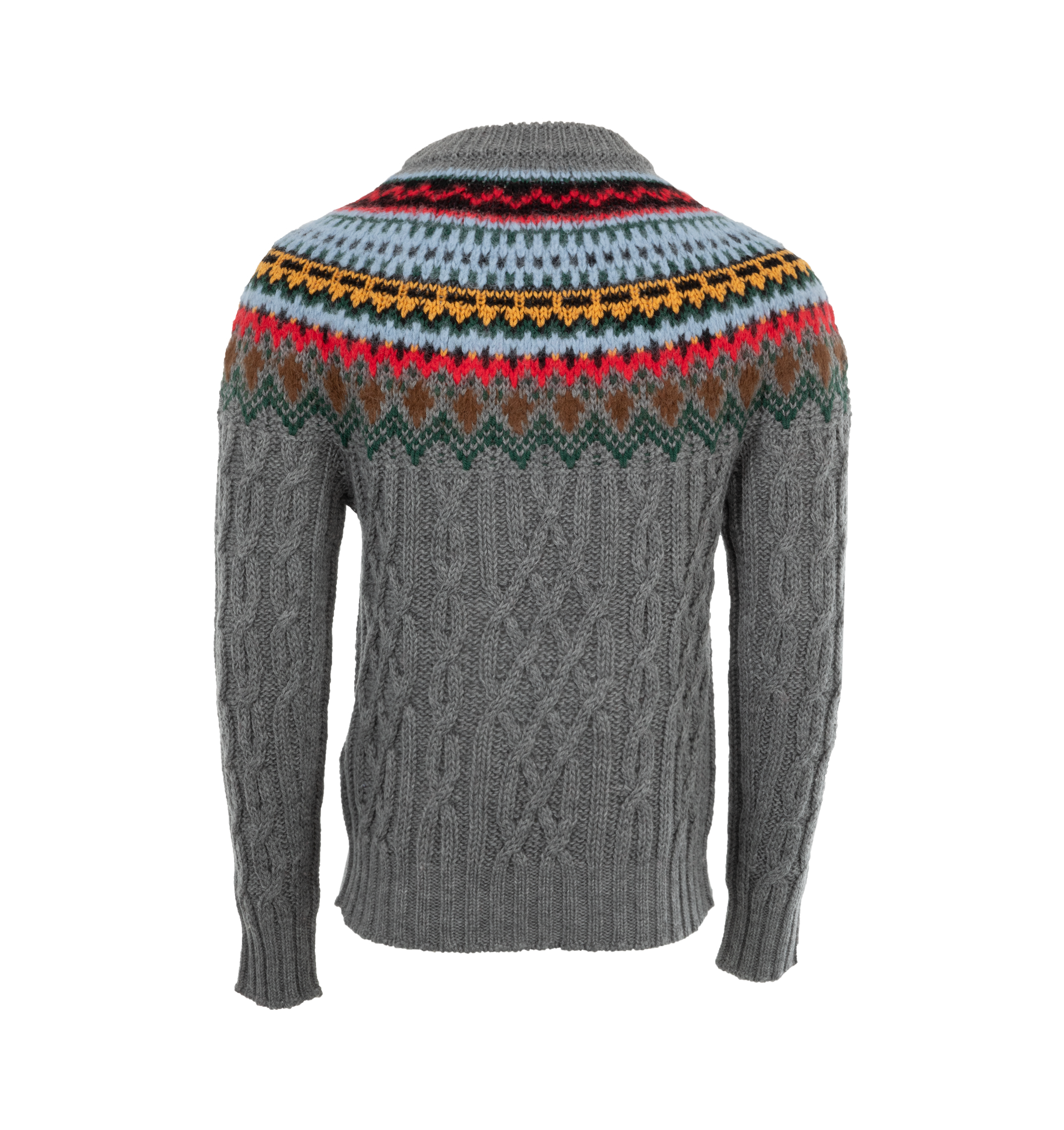 Introducing the Moncler Grenoble Fair Isle Sweater for men—a luxurious blend of traditional design and modern craftsmanship, perfect for winter getaways.