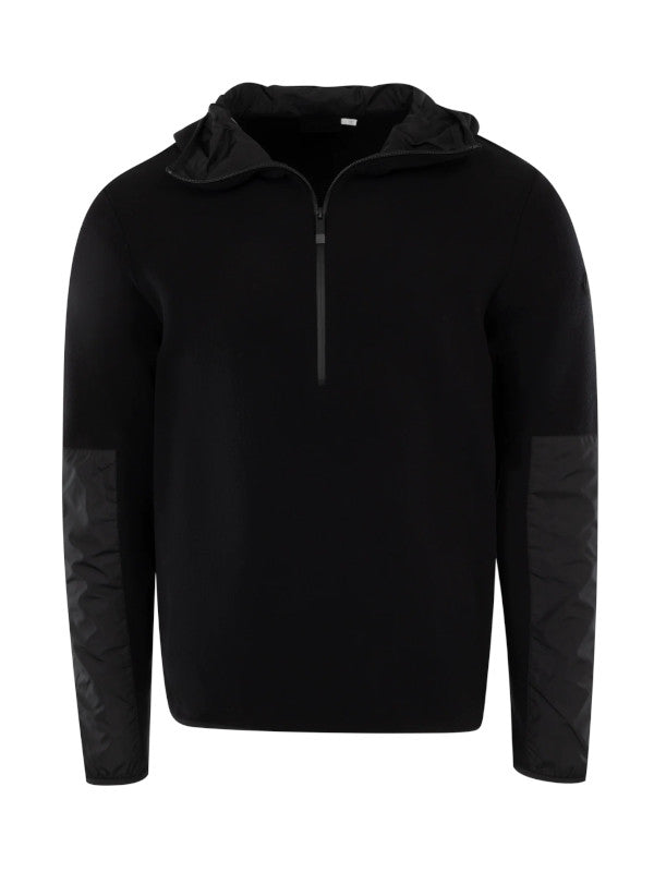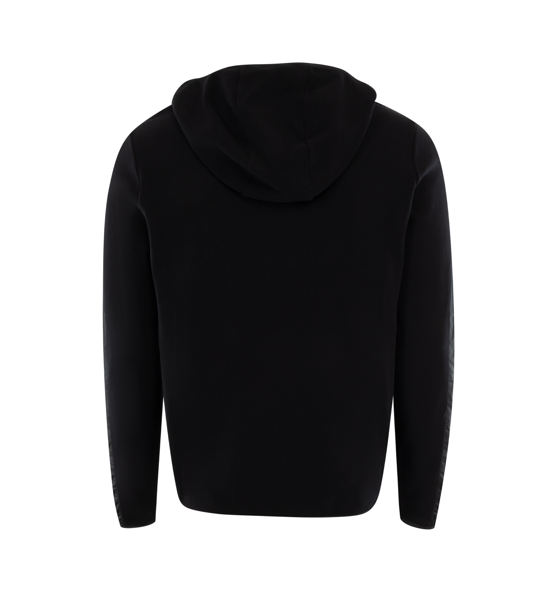 MONCLER Hooded Sweatshirt featuring nylon patches on the sleeves, hooded, zipper closure and embossed silicone logo patch. 100% polyamide/nylon.