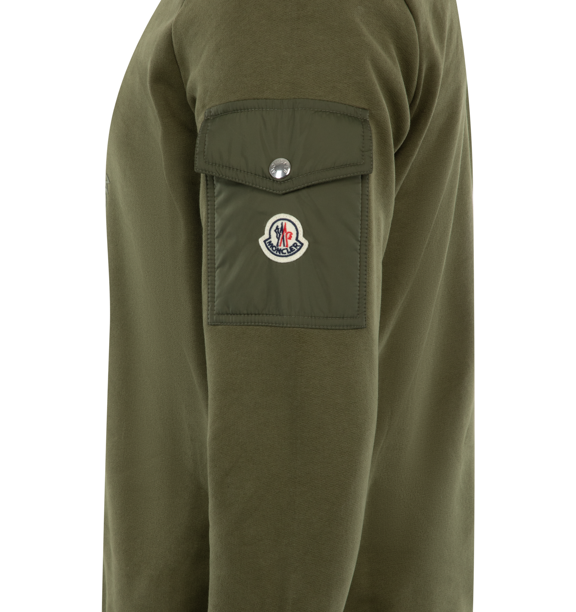 MONCLER Logo Sweatshirt featuring embroidered logo on chest, pocket on sleeve with logo, long-sleeves, crew neck and ribbed cuffs. 100% cotton.