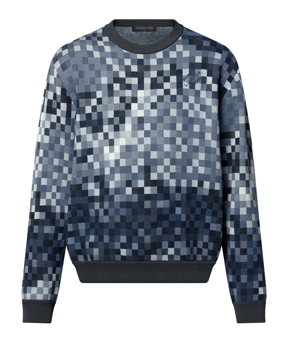 Design Details: Subtle Louis Vuitton signature on the chest, intricate pixelated knit pattern