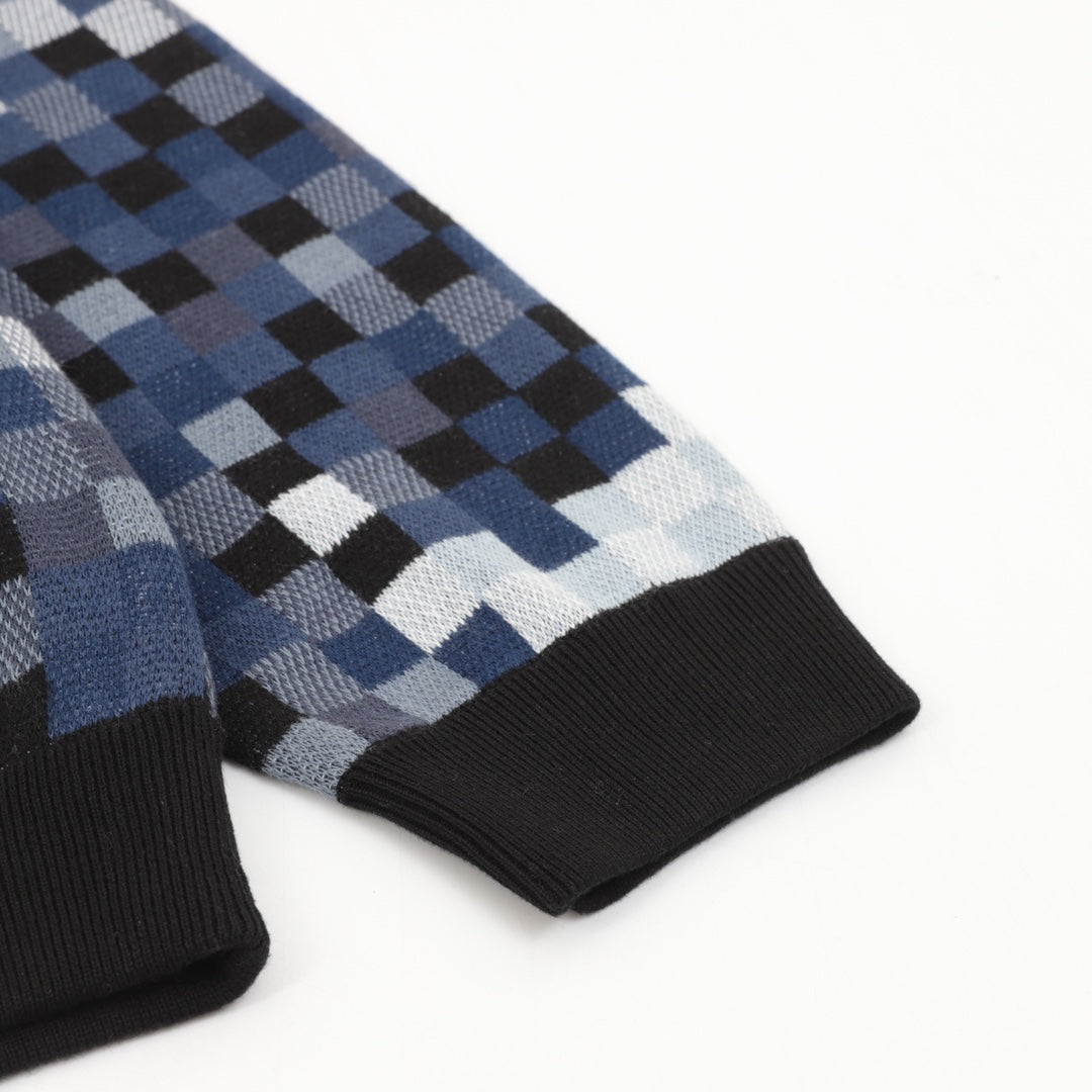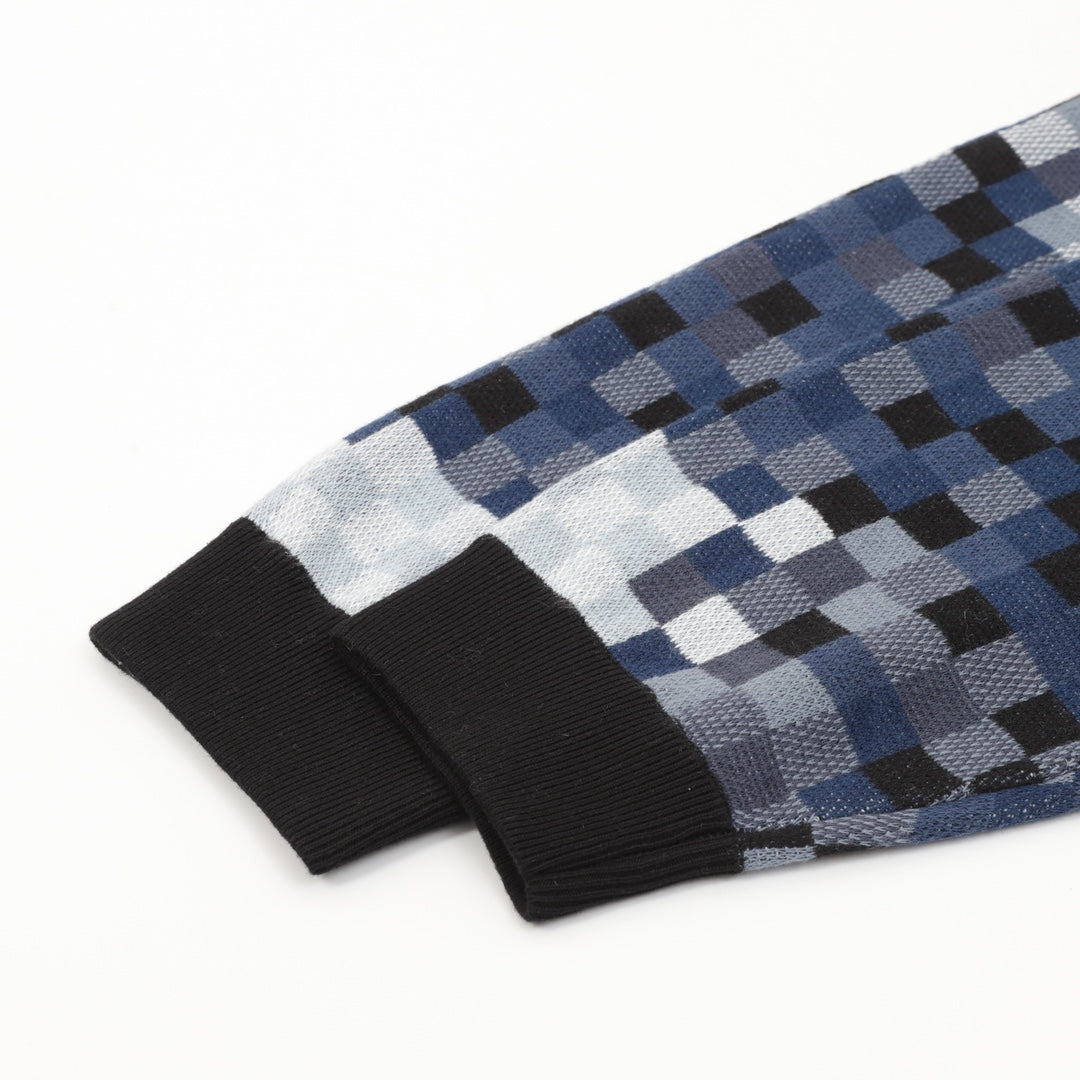 Step into modern luxury with the Louis Vuitton Pixel Check Crewneck Sweater, a standout piece that blends craftsmanship with digital-inspired design. Featuring a striking blue and grey pixelated check pattern, this sweater redefines classic knitwear with a futuristic edge.