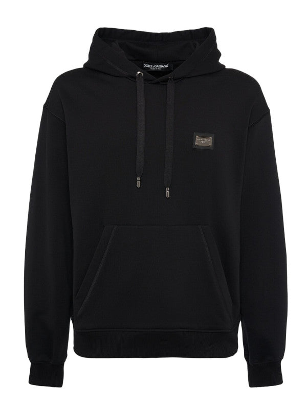Elevate your casual wardrobe with this sleek and versatile black hoodie from Dolce & Gabbana. Crafted from premium cotton, this hoodie combines comfort and style effortlessly. It features a drawstring hood with metal-tipped cords, a kangaroo pocket for practicality, and ribbed cuffs and hem for a snug fit. The subtle yet iconic Dolce & Gabbana logo patch on the chest adds a touch of luxury to this minimalist design. Perfect for layering or wearing on its own, this hoodie is ideal for both relaxed weekends and stylish streetwear looks. Pair it with jeans or joggers for a refined yet casual outfit.