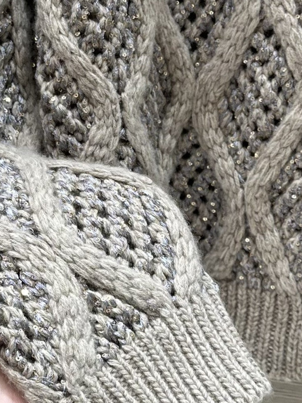 - Details: Intricate open-knit pattern with ribbed cuffs and hem for a relaxed yet polished finish