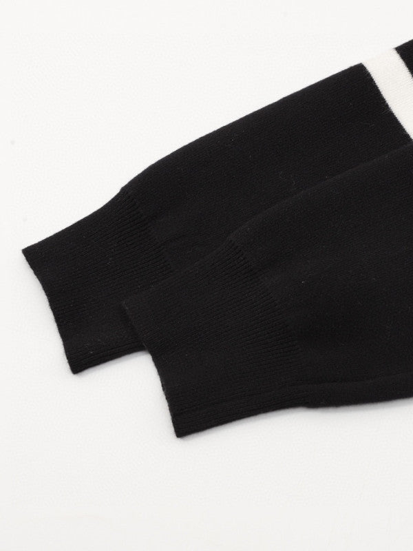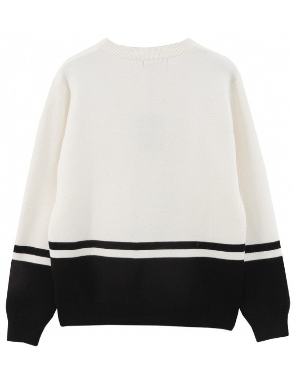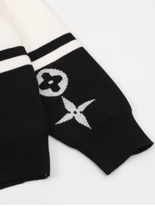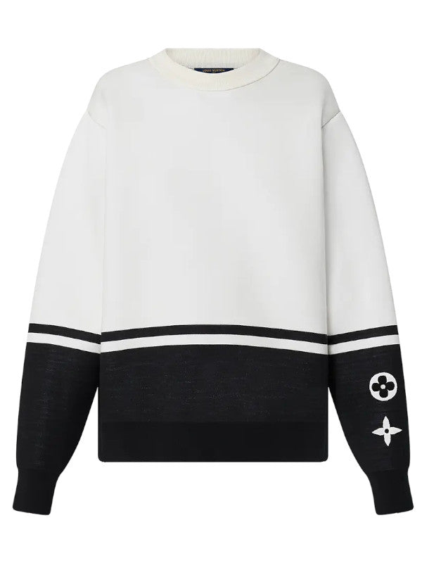 Refined minimalism meets iconic luxury in the Louis Vuitton Monogram Stripe Knit Sweatshirt. Featuring a clean, white upper body and contrasting black lower panels and cuffs, this piece is elevated by crisp horizontal stripe accents across the chest and arms.