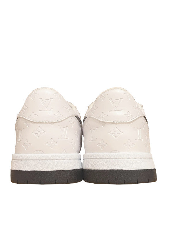 Featuring the embossed Louis Vuitton monogram pattern across the white leather upper, these sneakers exude sophistication and style.