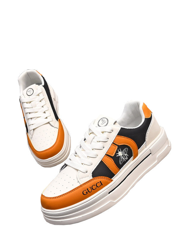Introducing our stylish and comfortable Gucci Bee Sneakers, designed to elevate your casual wardrobe. These sneakers feature a striking combination of black, orange, and white, ensuring you stand out wherever you go. The high-quality construction includes a durable rubber sole, providing excellent traction and long-lasting wear.