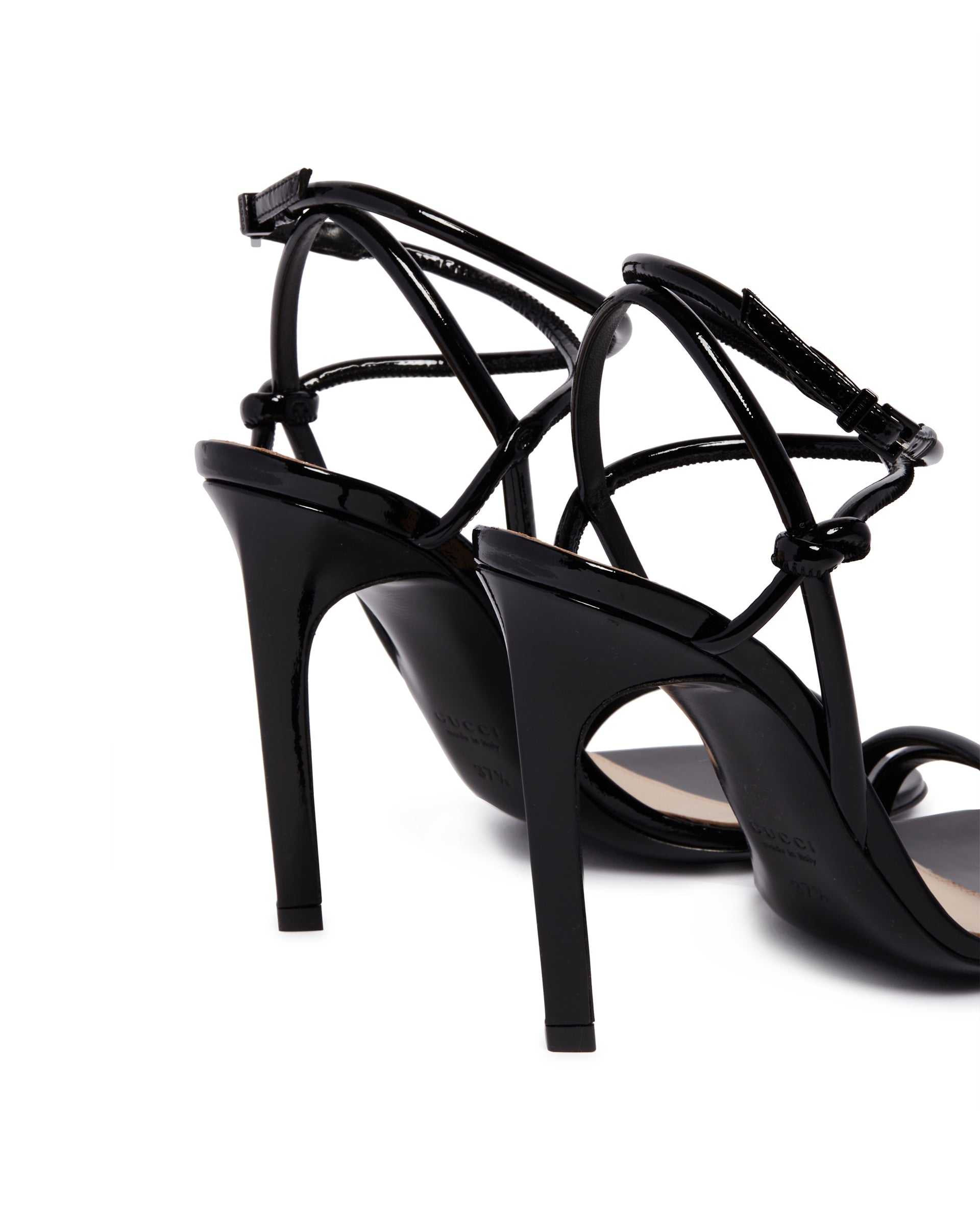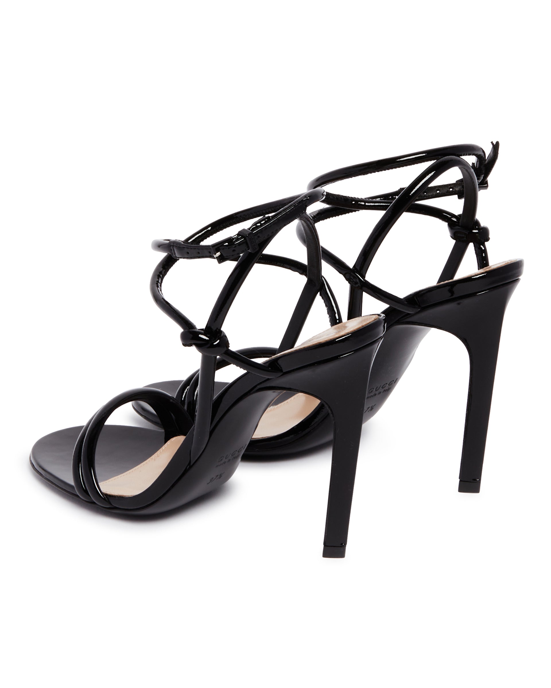 Gucci Black Leather Strappy Sandals. Black leather upper, knot detail on the side, adjustable buckle fastening and high heels. Leather sole, leather insole.