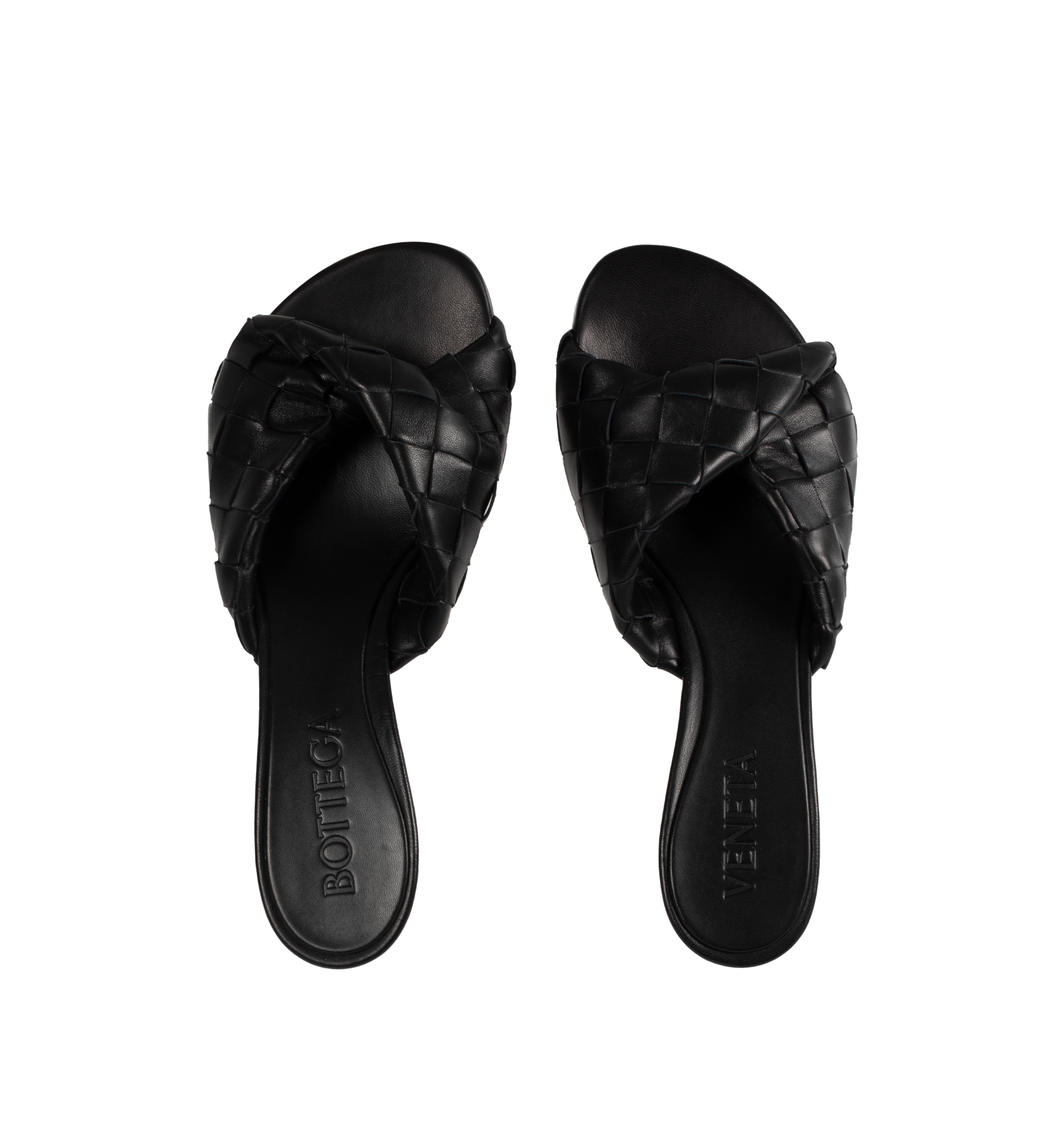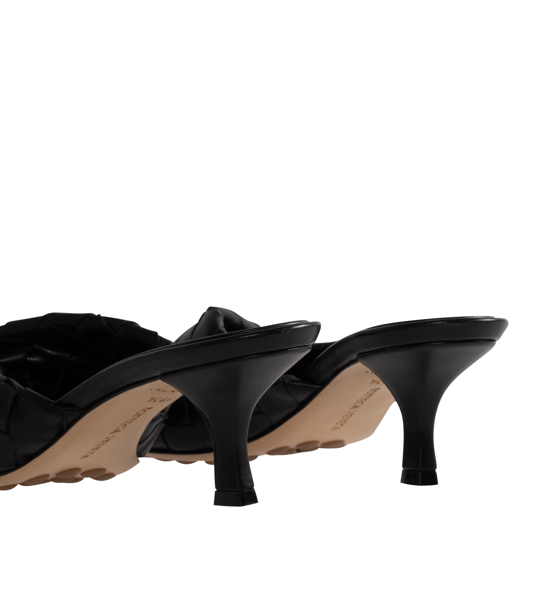 Bottega Veneta Leather mule with a folded detail in Intrecciato leather. Lambskin, unlined with rubber-injected leather outsole. Heel measures 2". Made in Italy.