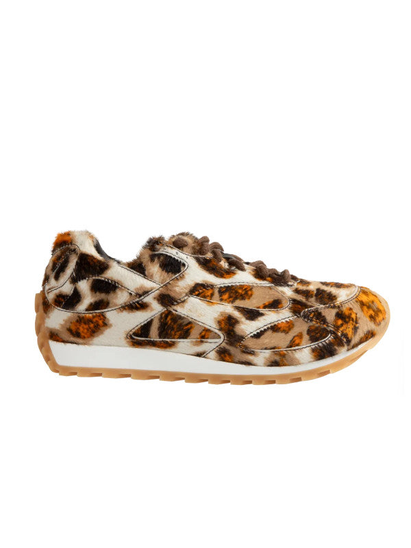 BOTTEGA VENETA Orbit Sneaker in calf hair with jaguar print featuring lace-up front and gripped soles. Rubber outsole. Made in Italy.