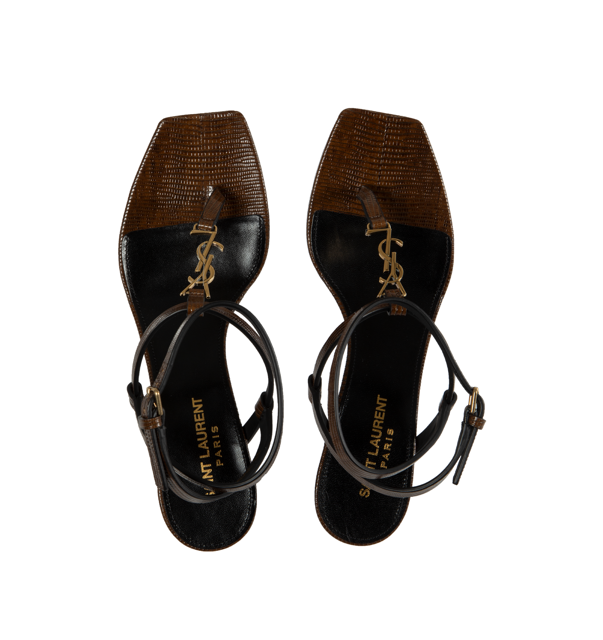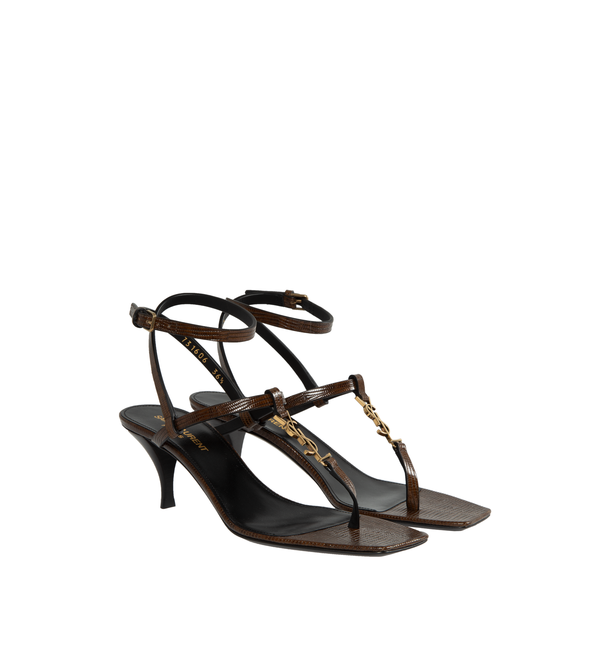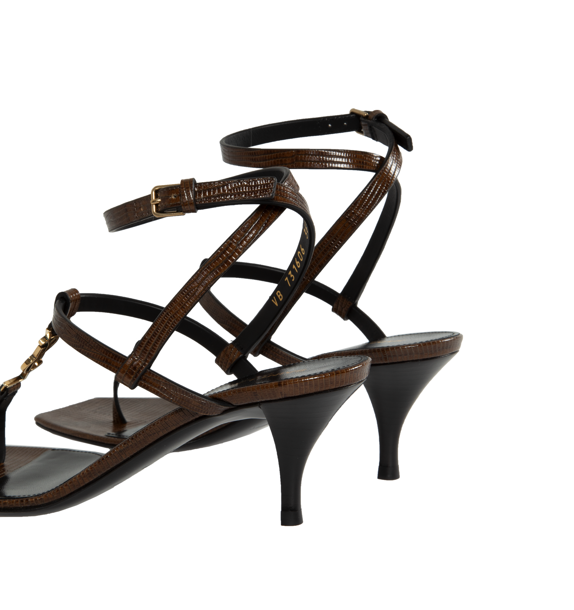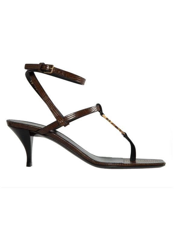 SAINT LAURENT Cassandra Sandal featuring multi strap, square toe, cassandre on front and adjustable ankle strap. 60MM. Leather.