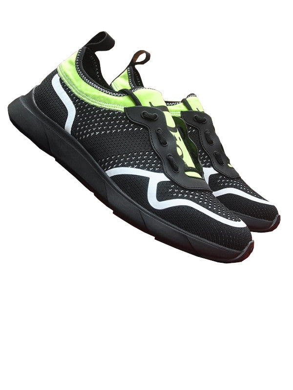 Features a bold black and white color scheme with neon green accents for a contemporary look.