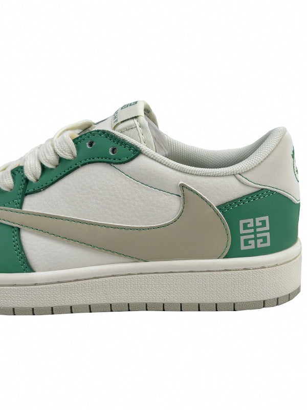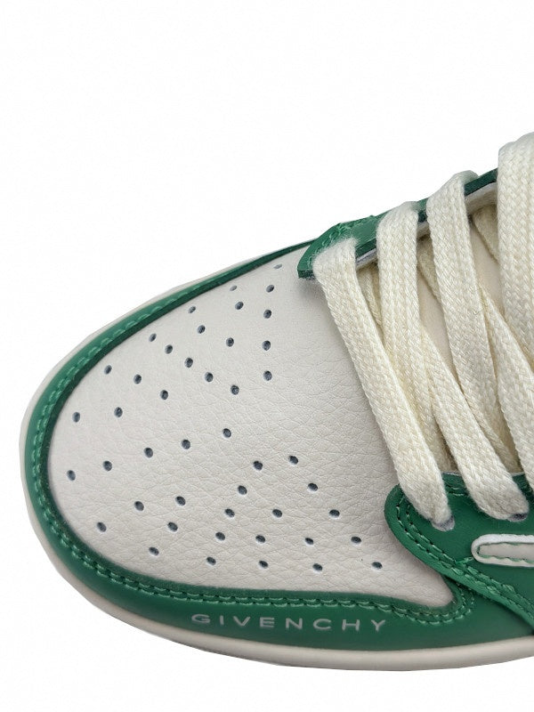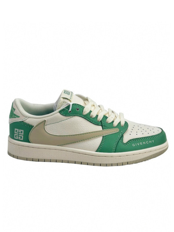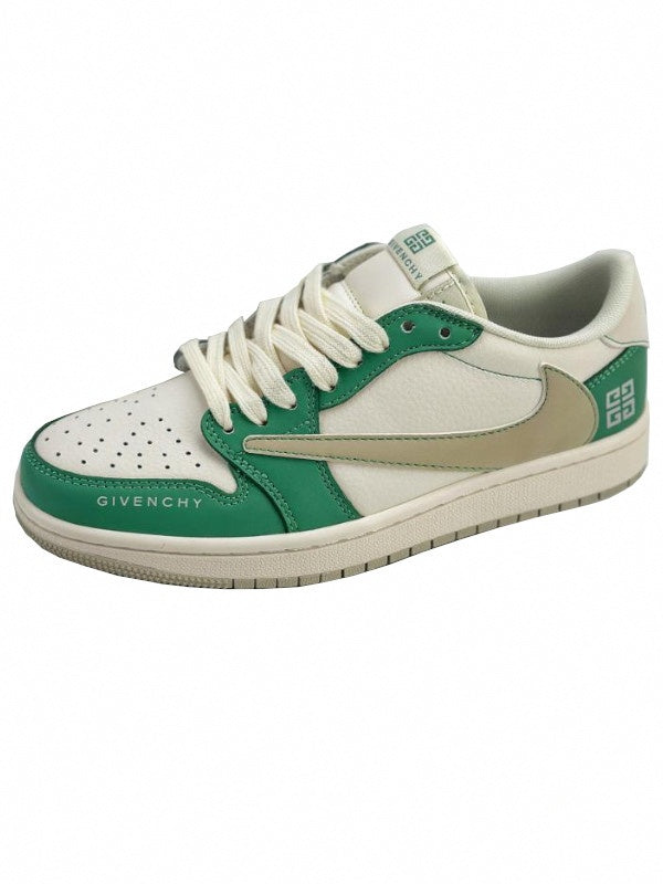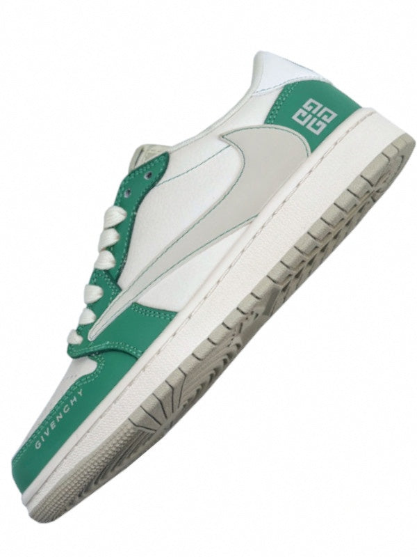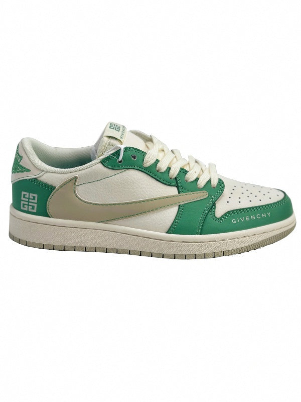 Introducing the Givenchy & Nike Low-Top Sneakers, a perfect blend of luxury and streetwear. Featuring a sleek green and white colorway, these sneakers are designed with premium leather for a smooth and comfortable fit. The iconic Givenchy branding is tastefully displayed on the toe and heel, adding a touch of sophistication to the casual design.