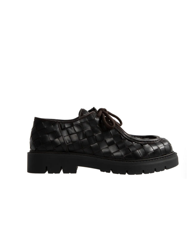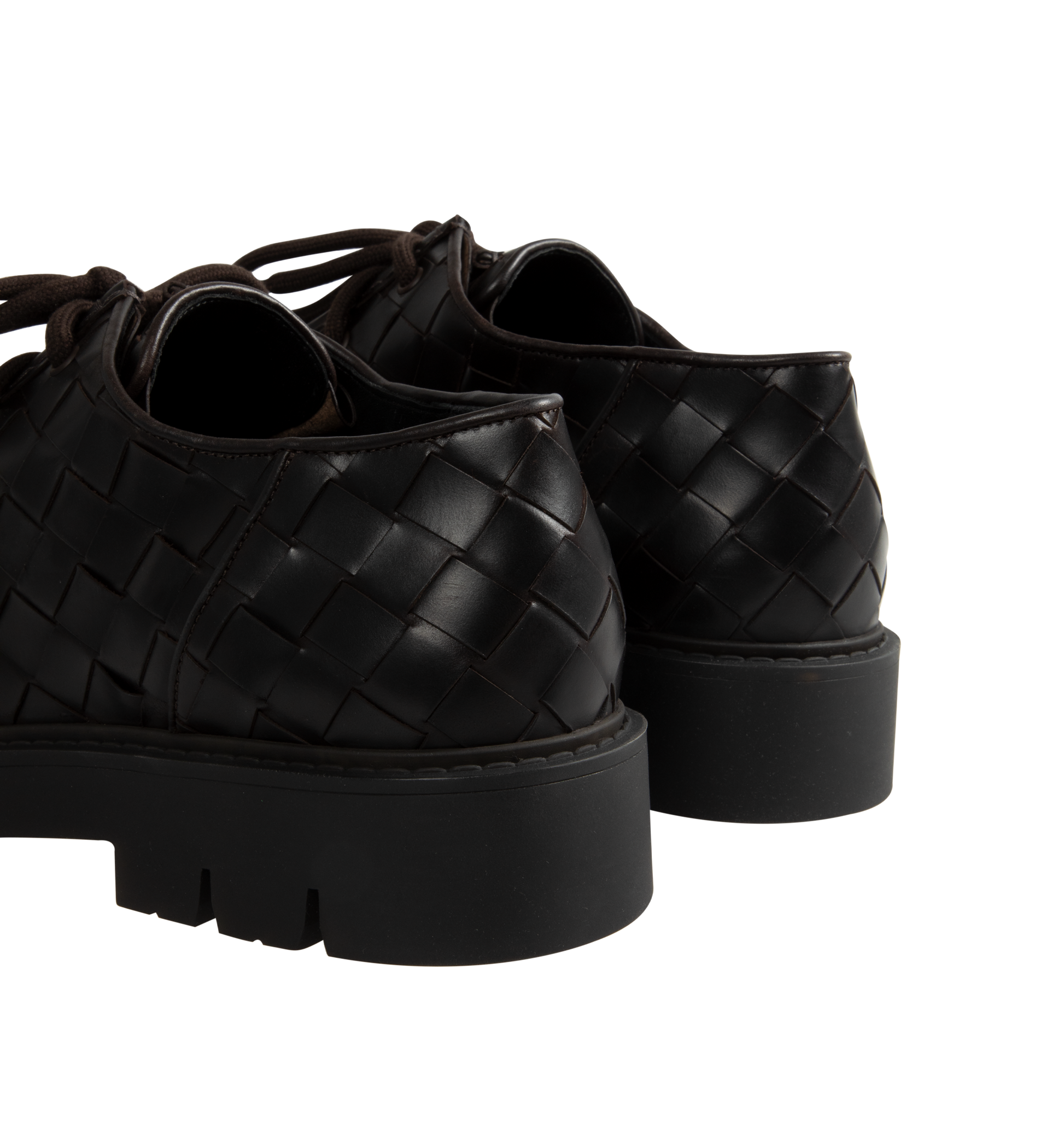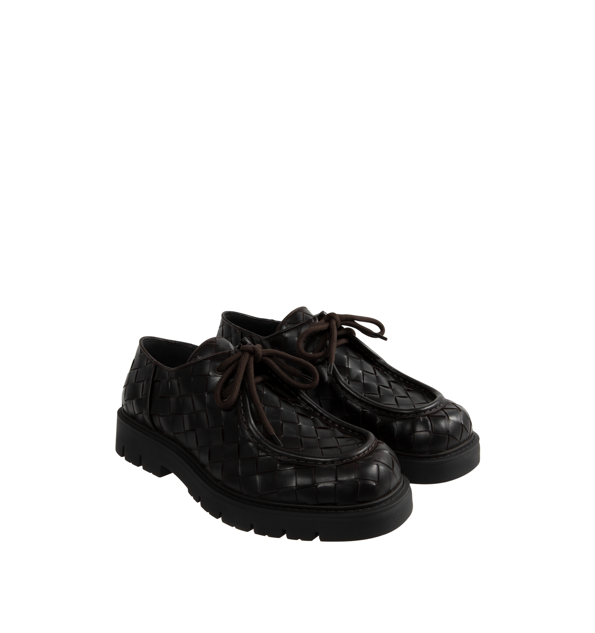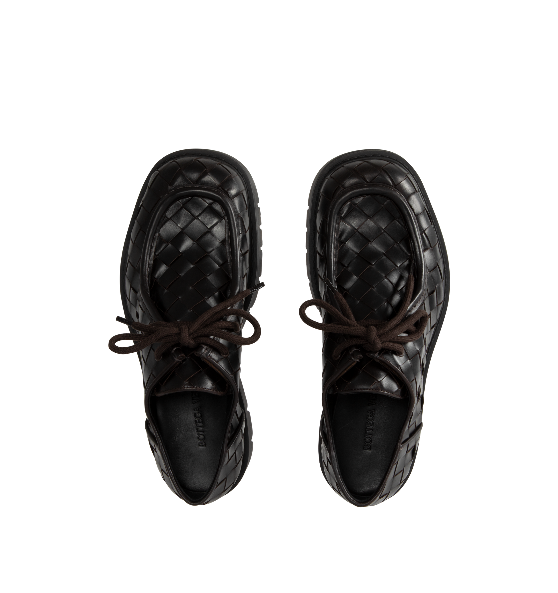 Bottega Veneta Haddock Lace-Up Shoe in smooth calfskin with all-over Intrecciato craftsmanship. Upper and lining: calfskin. Rubber outsole. Made in Italy.