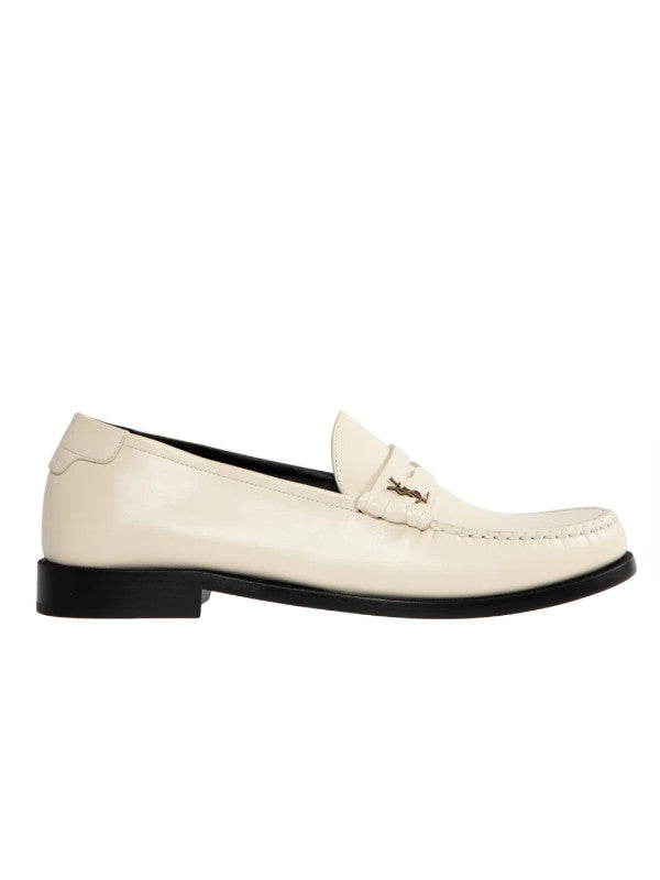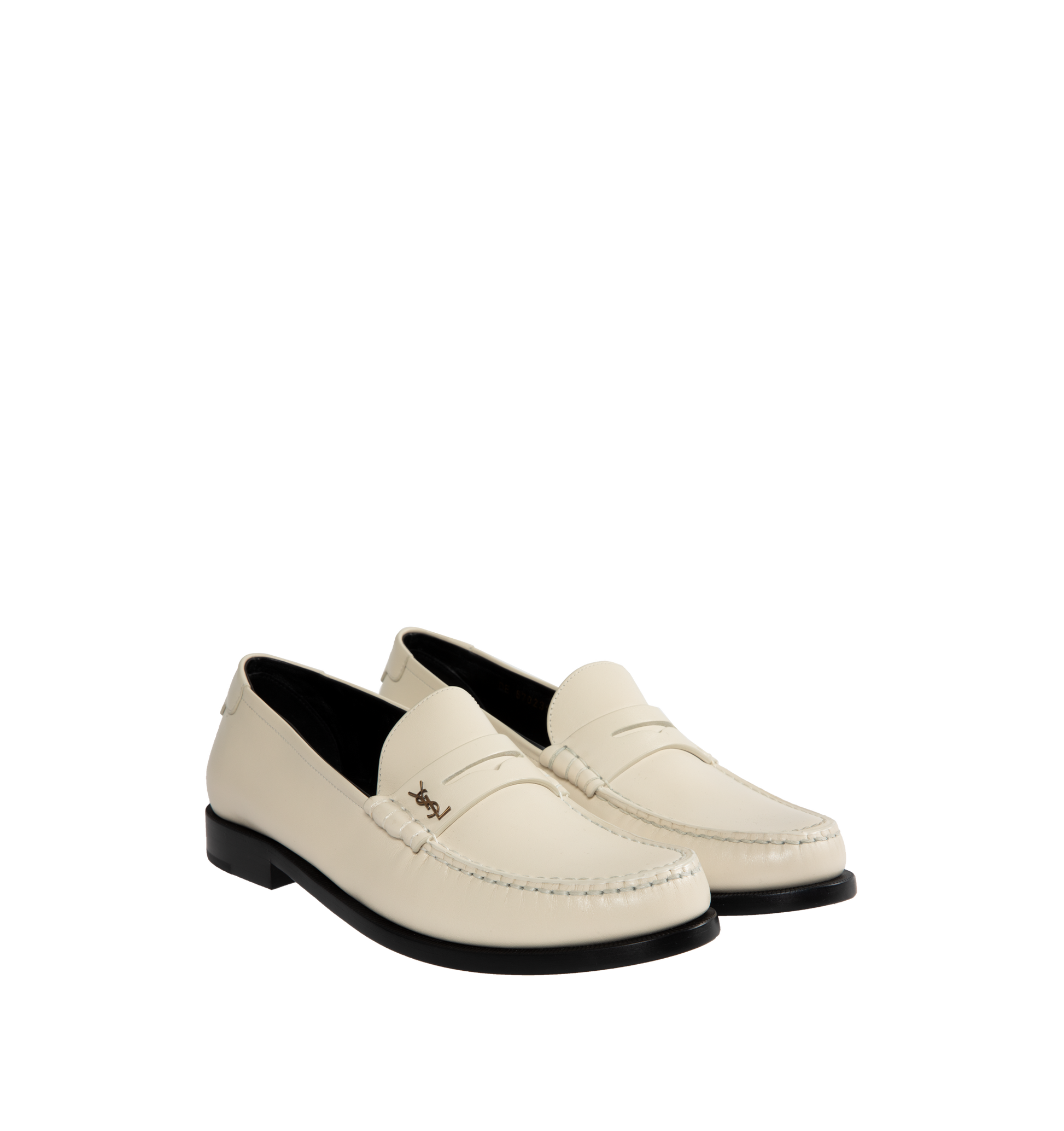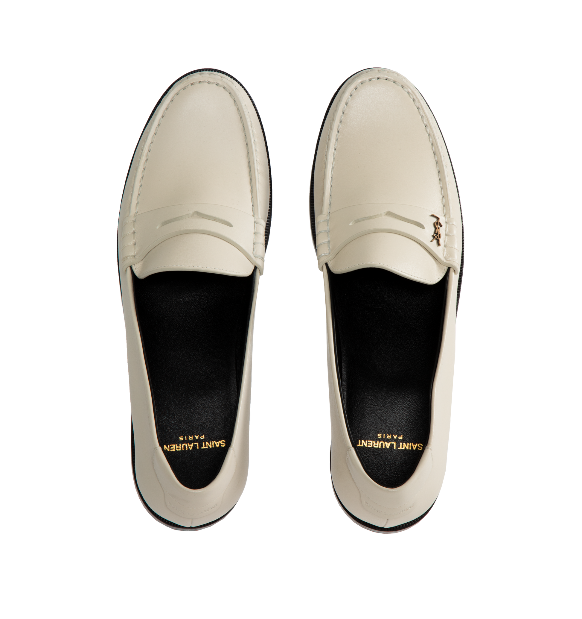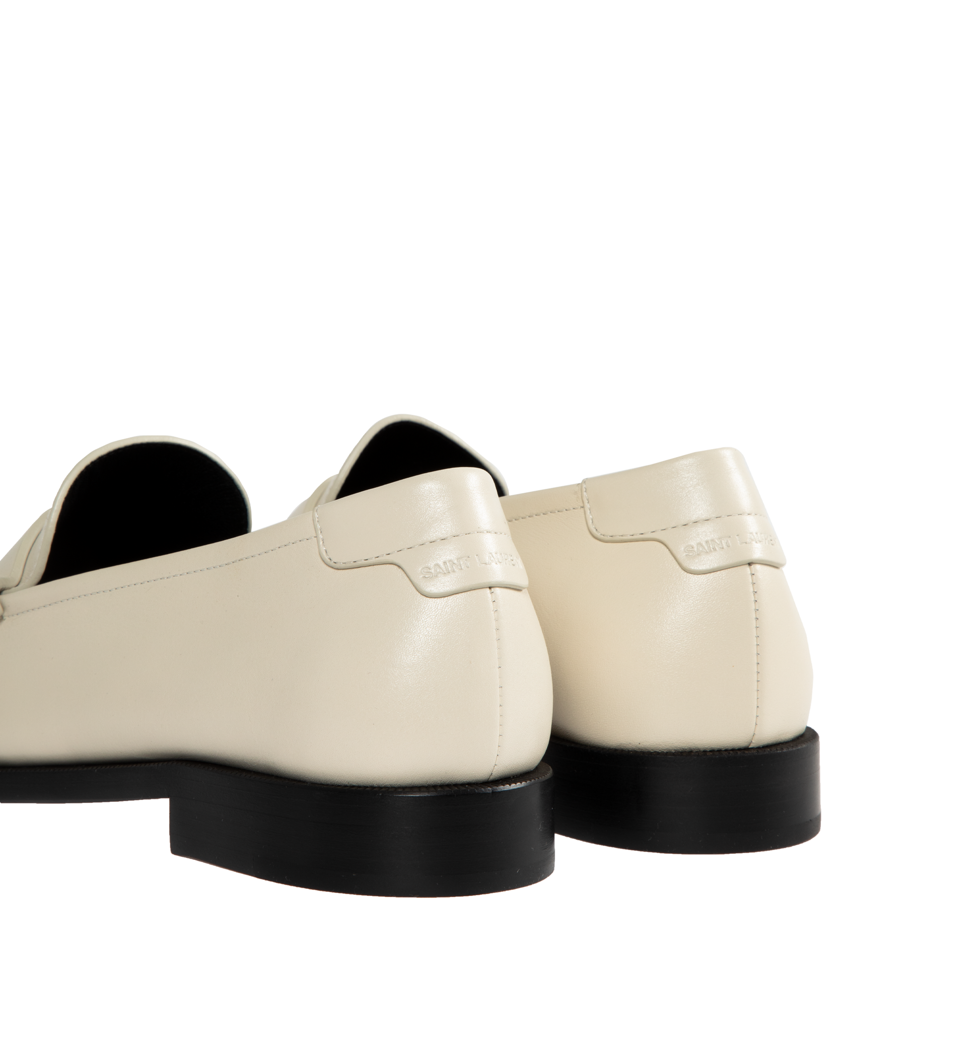 SAINT LAURENT Le Loafer Penny Slippers featuring leather sole, logo embossed on back tab and cassandre in gold toned metal. Calfskin.
