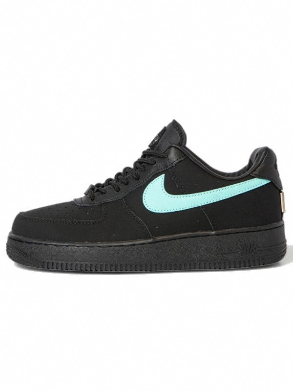 Crafted from premium nubuck leather in a sleek black hue, this Air Force 1 Low exudes sophistication and versatility. The defining feature of this collaboration is the signature Swoosh logo on the side, adorned with the immediately recognizable Tiffany blue hue, adding a pop of color and elegance to the design.