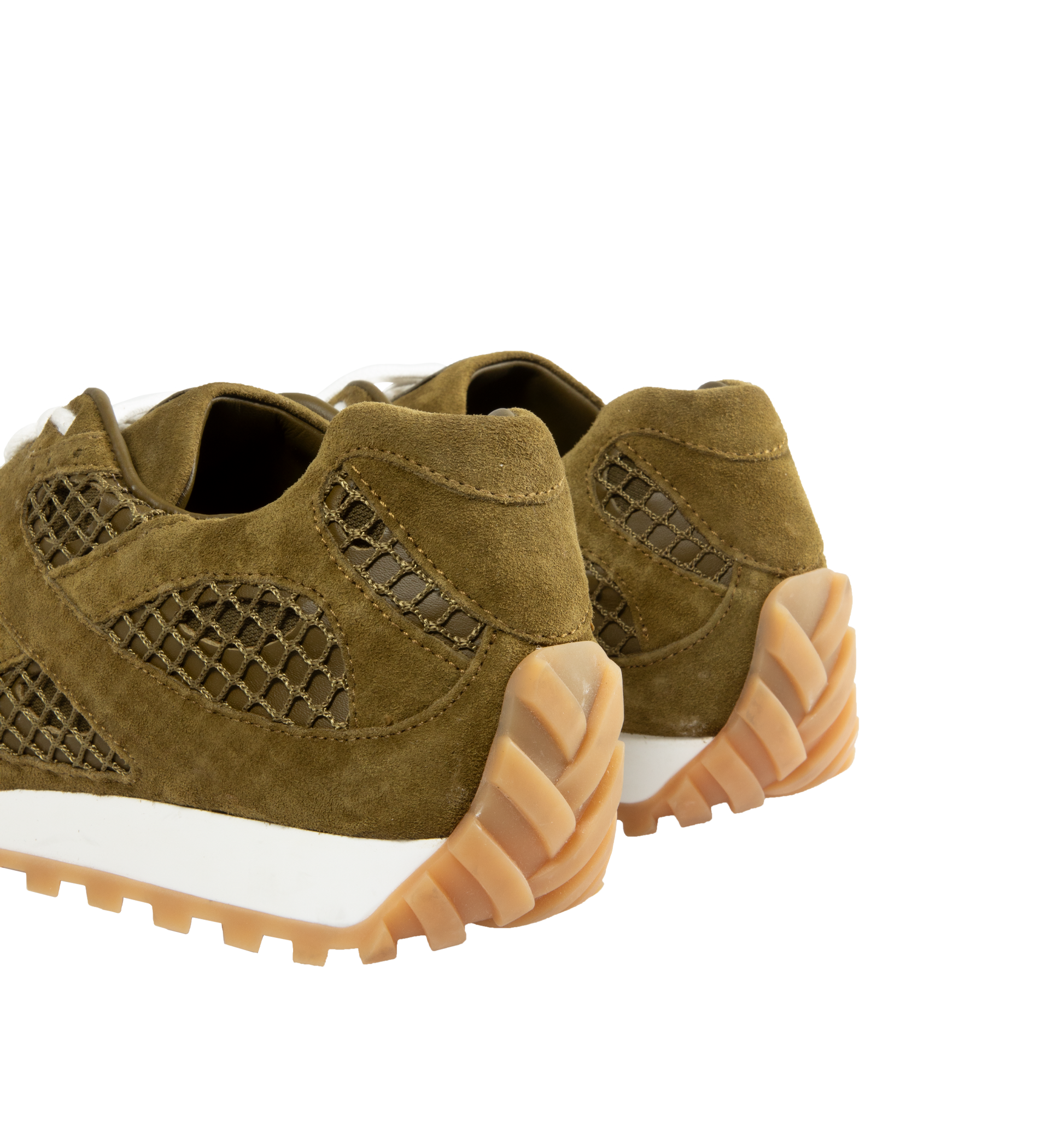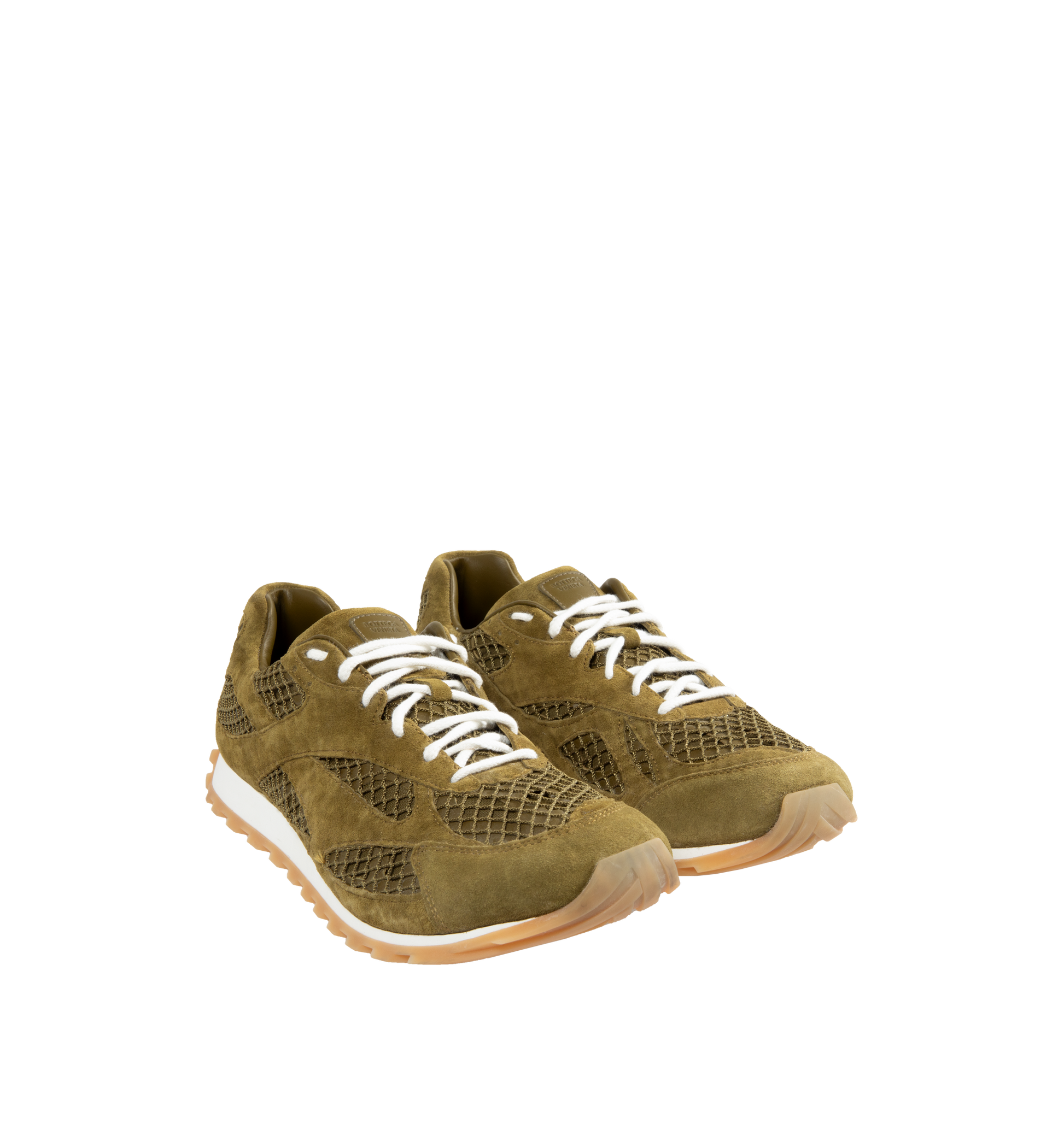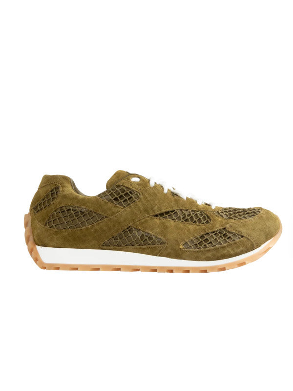 BOTTEGA VENETA Orbit Calfskin Sneaker featuring weathered suede and lightweight technical mesh, lace-up, suede calfksin and rubber outsole.