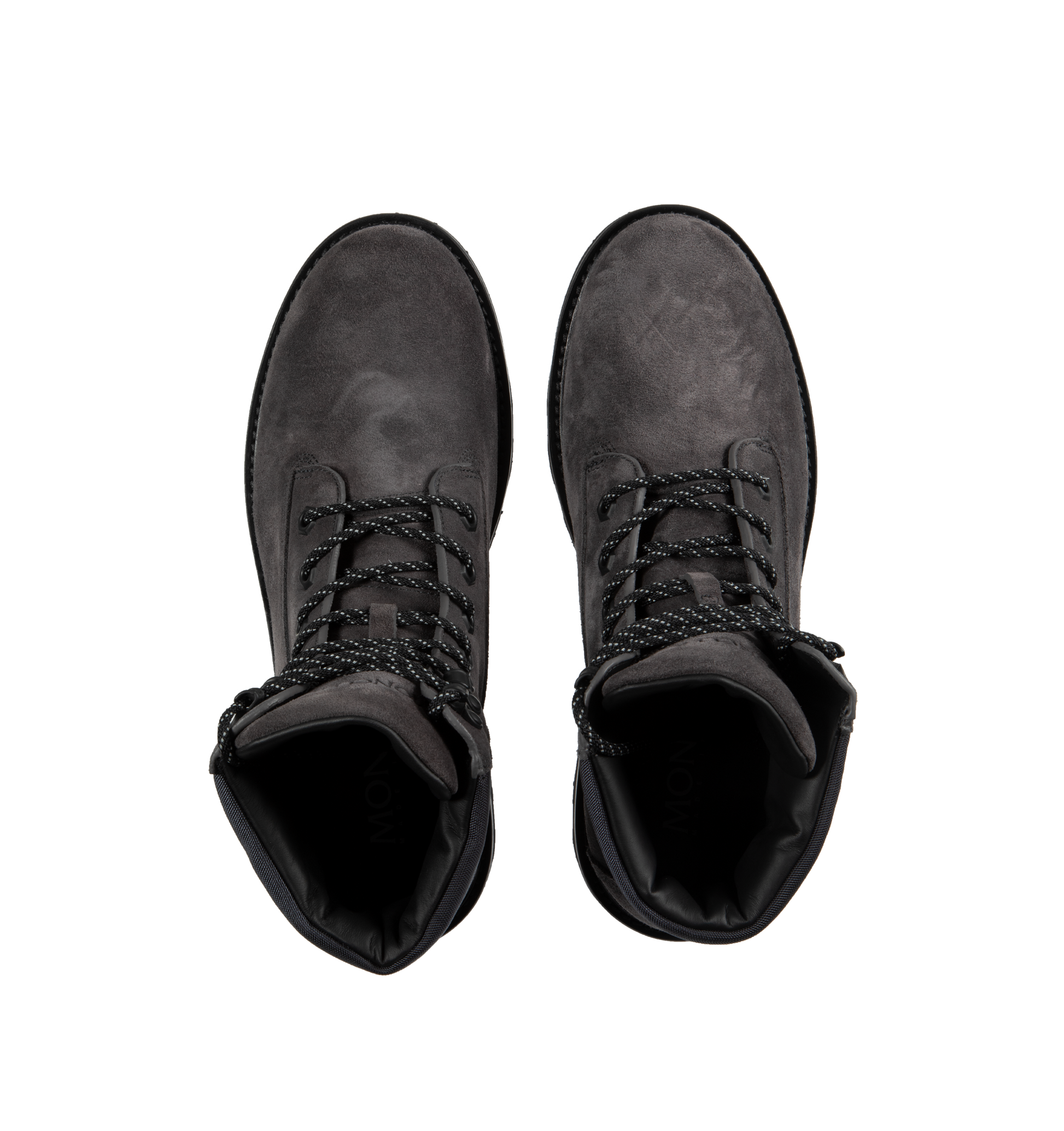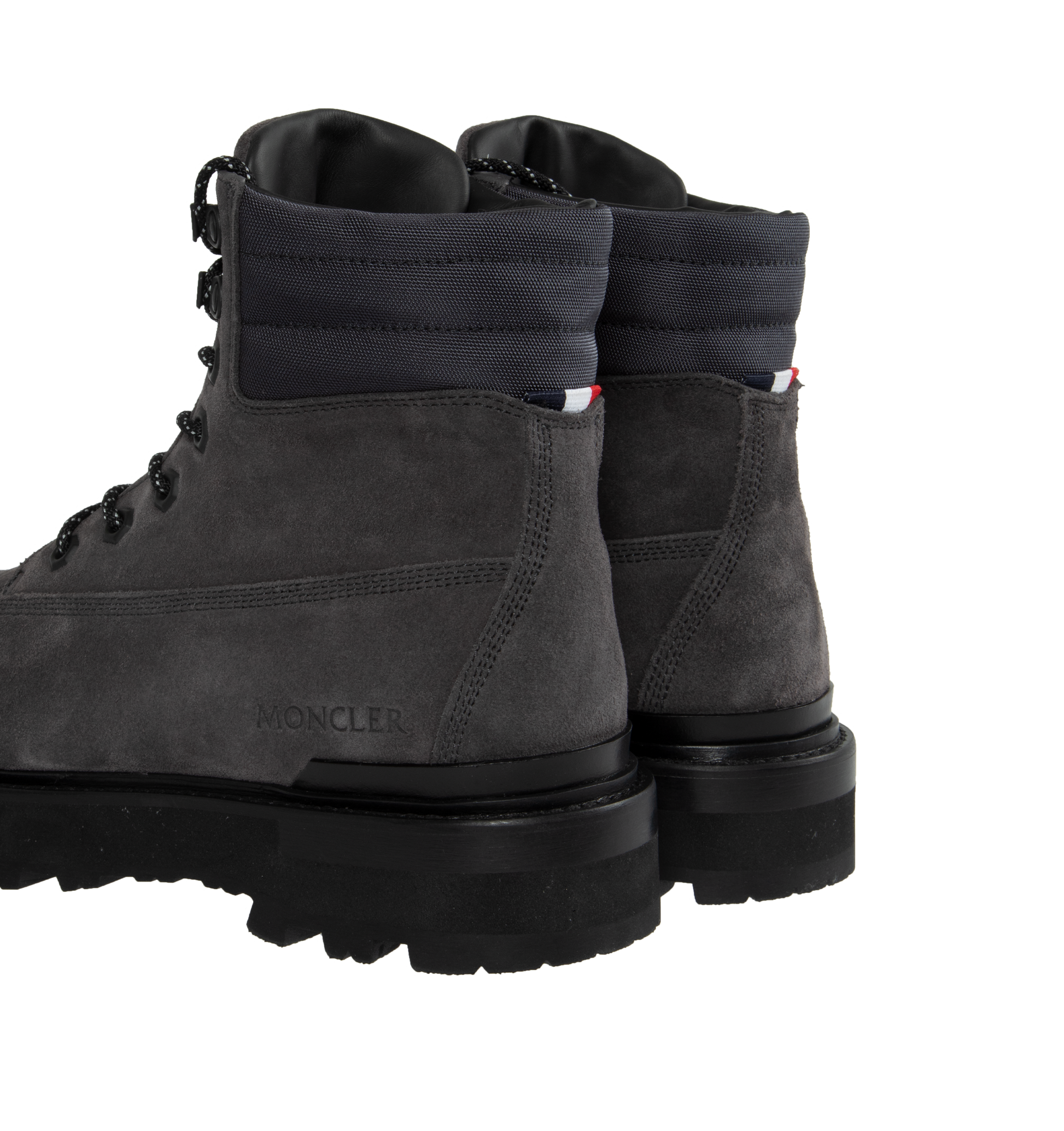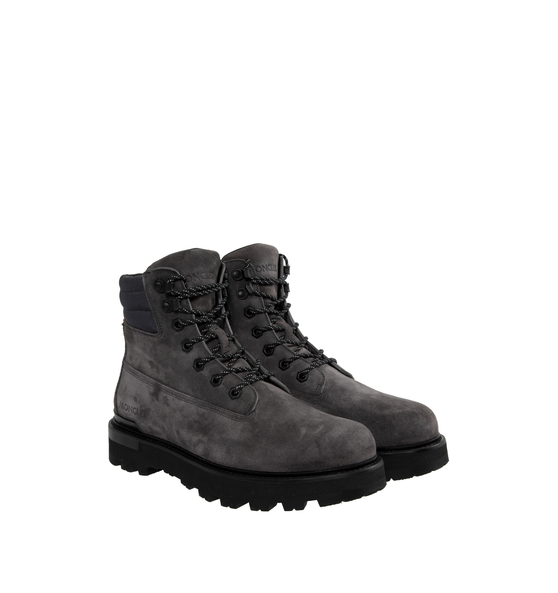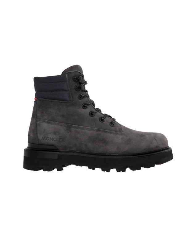 MONCLER Peka Trek Boots featuring suede and nylon upper, leather lining insole, lace closure, leather welt, micro rubber midsole and vibram rubber tread. Sole height 5.5 cm. 100% polyamide/nylon. Lining: cow. Sole: 100% elastodiene.