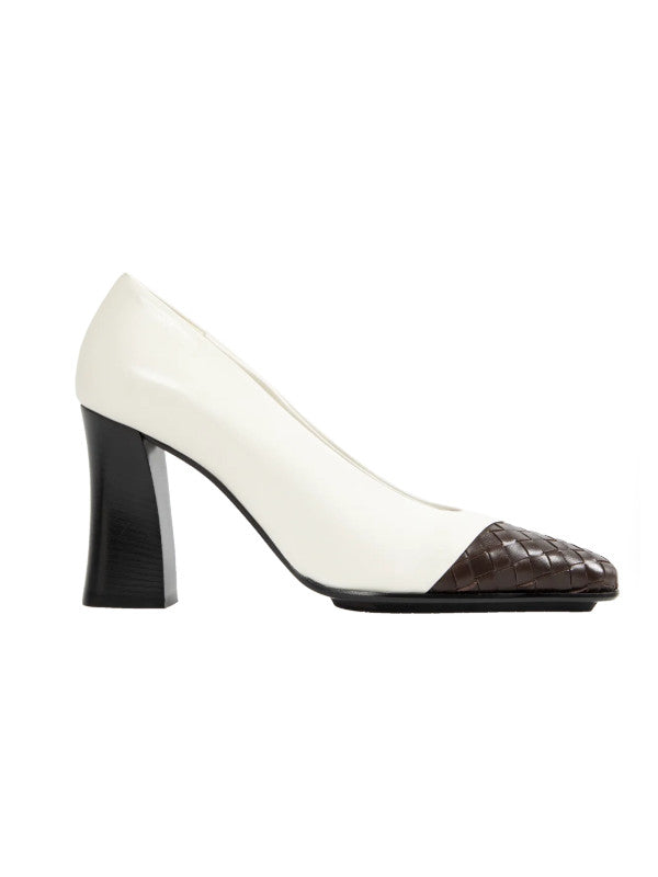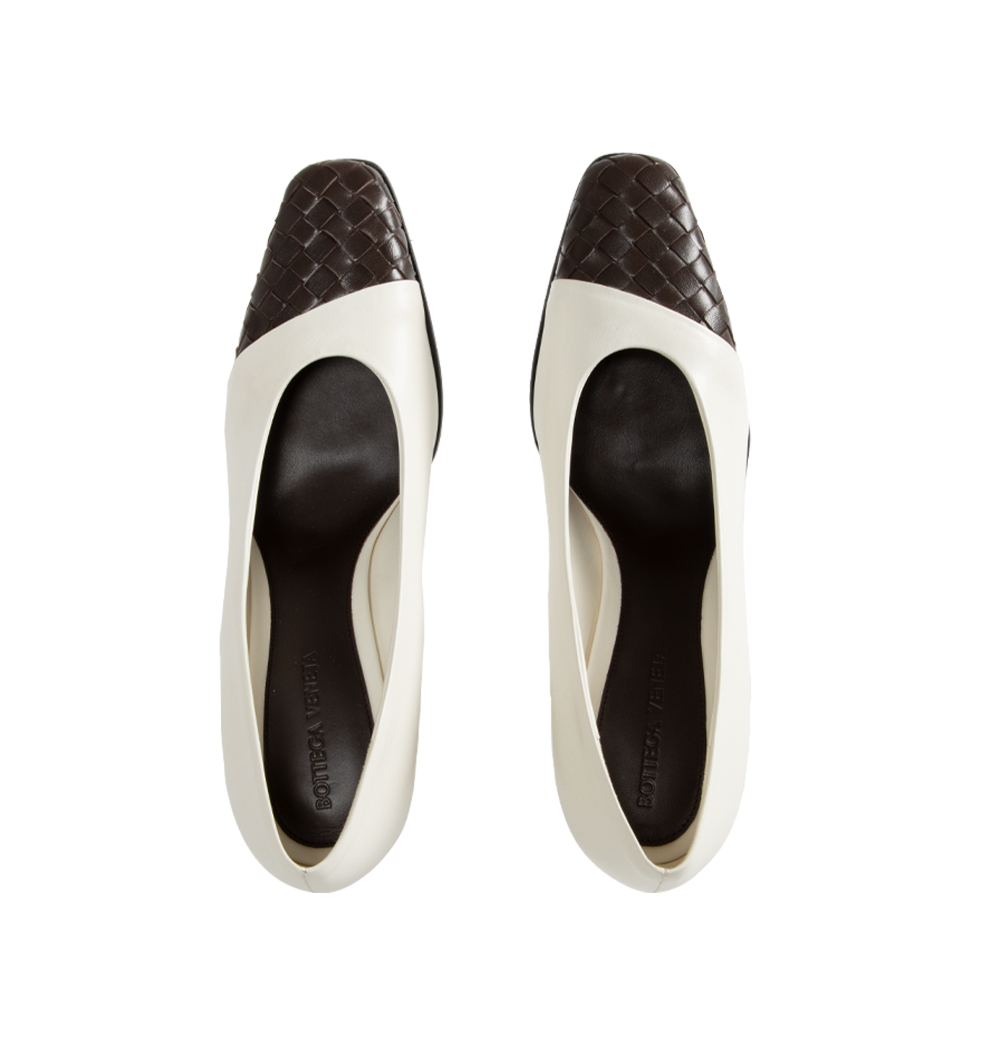 Bottega Veneta Step Pumps have square toes with signature Intrecciato weaving, leather uppers, and rubber outsoles. Made in Italy.