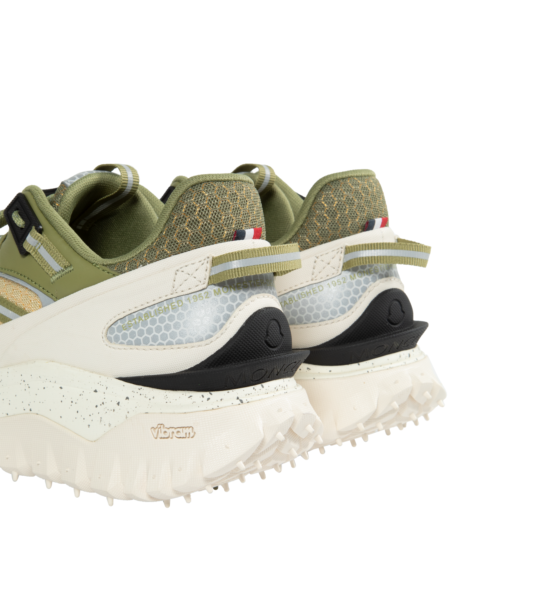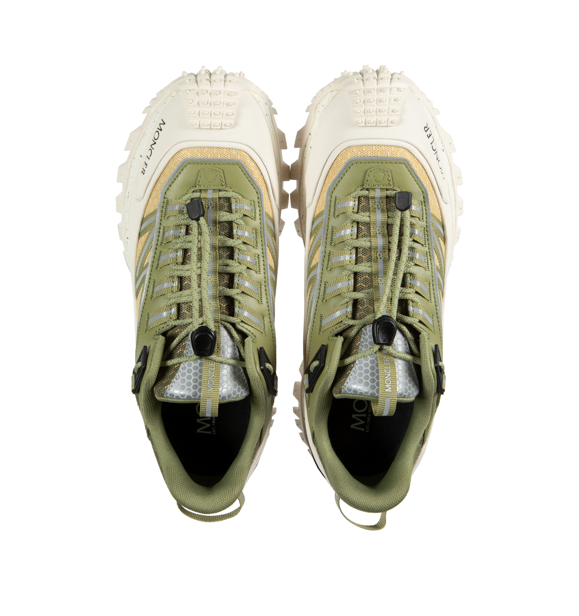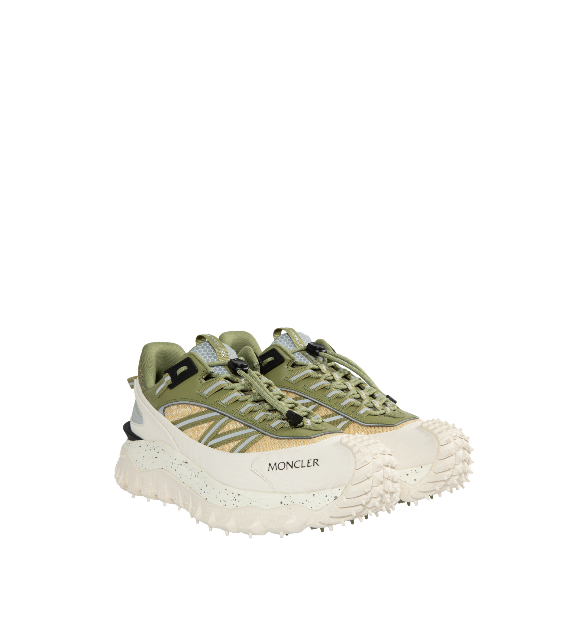 MONCLER Trailgrip Sneakers featuring mesh upper, mesh lining, lace closure, TPU spoiler sole, EVA midsole, carbon fiber between midsole and tread, Special Vibram MEGAGRIP rubber compound tread and OrthoLite® insole. Sole height 4.5 cm. 100% polyester. Lining: 100% polyamide/nylon. Sole: 100% elastodiene.